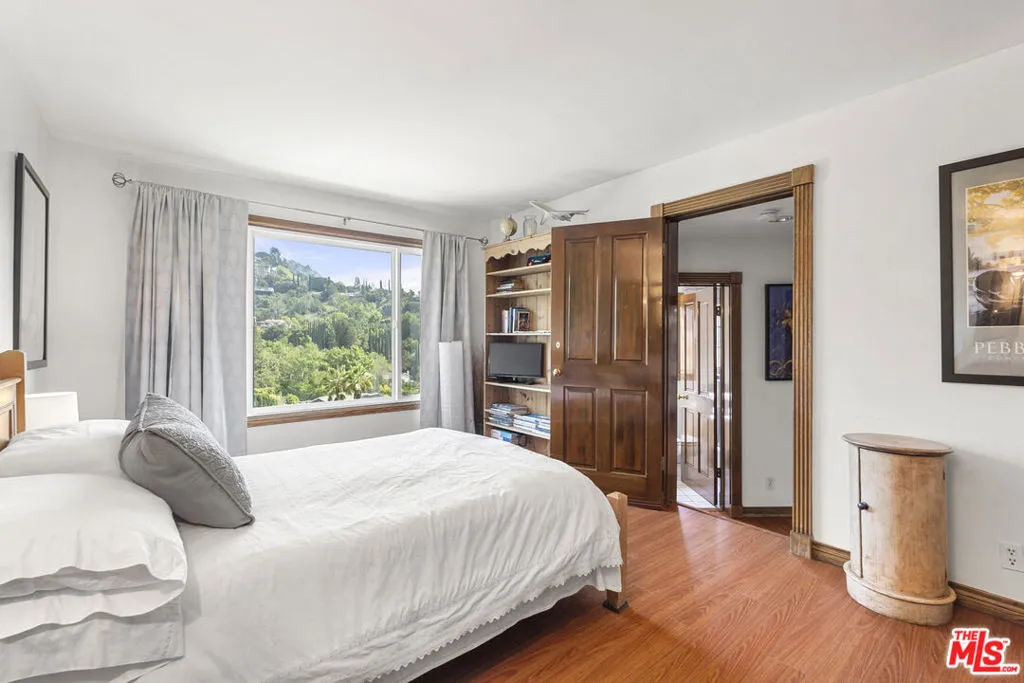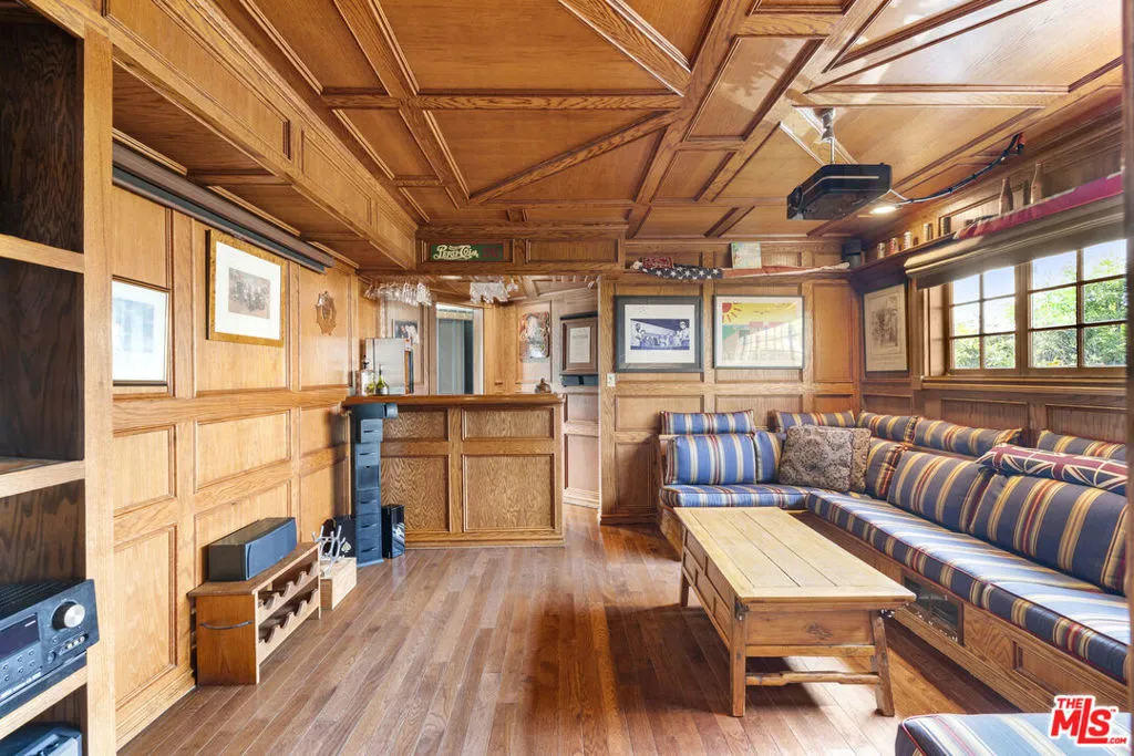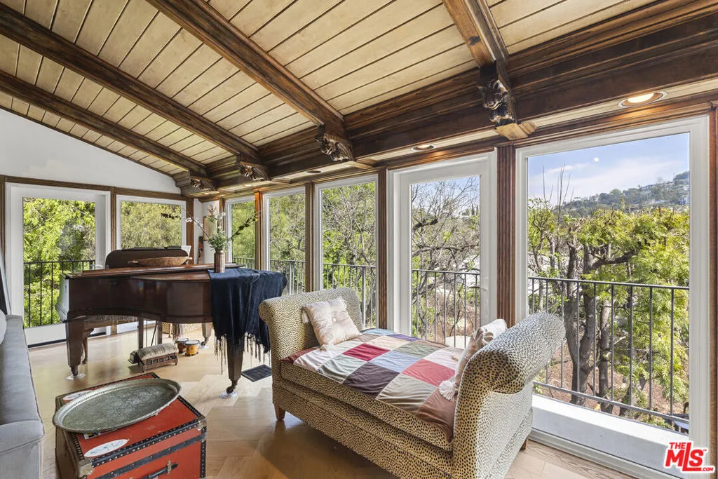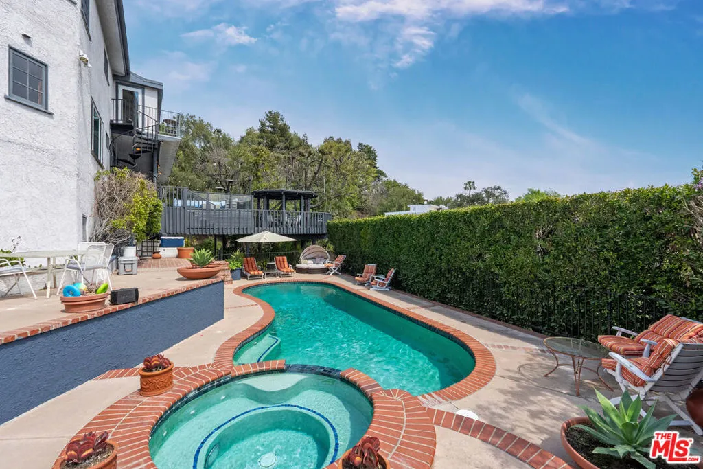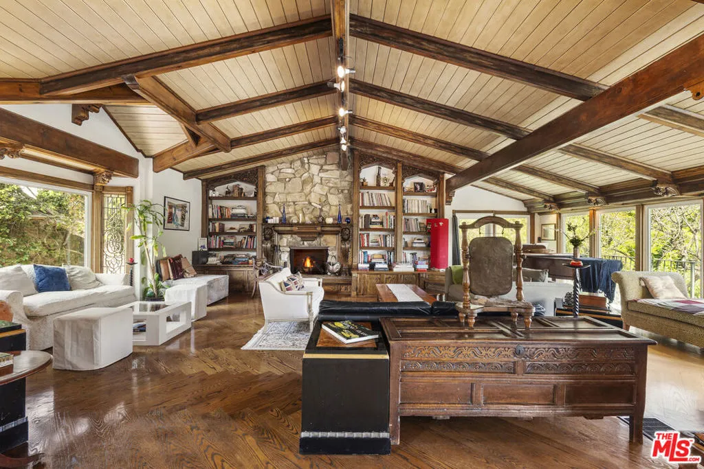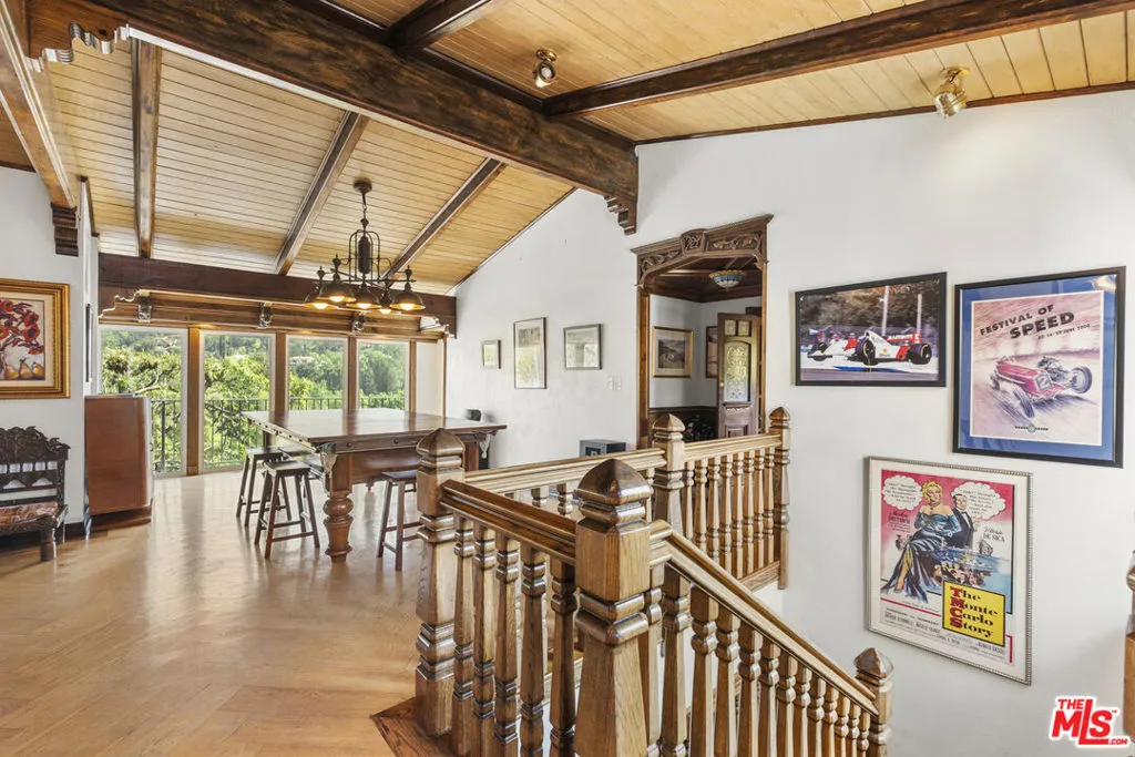 South of Ventura Blvd, nestled in the coveted Berry Hilltop Community of the Studio City hills, you will find 3537 Berry Drive, a fully furnished 4 bed, 4 bath character home with canyon views from every room that is equally suited for entertaining as it is for relaxation and creativity. Upon entering the recently refreshed home, you are immediately greeted by the living/dining area’s vaulted ceiling, exposed beams and wall of new windows overlooking the sun-drenched backyard and lush hillside beyond. The large great room features a hand-carved fireplace, antique grand piano, multiple seating areas and a pool/snooker table that doubles as a dining table fit for 14. Past a hallway full bathroom is the wood-paneled media room with English pub doors, built-in bar, and 84″ screen with a new 4k HD projector and surround sound. The bright, eat-in kitchen completes the first floor and comes fully stocked with dinnerware, pots/pans, etc. Down the impressive staircase are three bedrooms and two full bathrooms as well as the primary suite featuring a fireplace, walk-in closet, and separate vanity area, all with access to the outside. The south facing backyard has a large multi-level deck with a breezy gazebo, fire pit, and outdoor gym, all overlooking the totally private heated swimming pool, spa and built-in BBQ. When not enjoying all that the home has to offer, you’ll have easy access to the work, dining and shopping options in the valley and just through Laurel Canyon to West Hollywood and beyond, while elementary aged kids can potentially attend nearby Carpenter Community Charter School. Just bring your bags and enjoy that Hollywood Hills lifestyle.