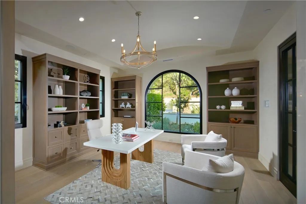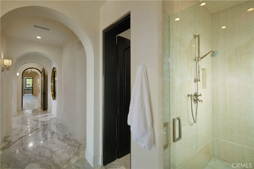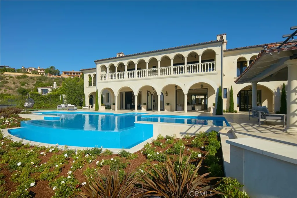 Crowning a coastal hill at the end of a private cul-de-sac behind double gates of the exclusive Estate Collection at Crystal Cove, this brand-new (2023) custom home is located on one of the most coveted streets in all of Newport Coast. Recalling the timeless prestige of a classic northern Italian villa, the grand residence is carefully positioned to capture breathtaking views. Impressive indoor and outdoor living areas frame panoramic vistas of the Pacific Ocean, Pelican Hill Golf Course, Newport Beach’s harbor and channel, a verdant canyon, and romantic sunsets. First impressions are incomparable, with an oversized gated entry courtyard overlooking a lower-level courtyard and providing a private space for outdoor socializing, welcoming guests, and relaxing as the sea air refreshes. Served by a commercial-grade Garaventa Lift and highlighted by a stunning iron spiral staircase, the three-level residence embraces appx. 4,090 SF of balconies, decks, and courtyards, and appx. 11,765 SF of interiors which host seven en suite bedrooms and eight full and three-half baths. Enrichments include generously proportioned formal living and dining rooms, an office, wine cellar, 15-seat home theater, gym, maid’s suite, guest house with private entrance, a secondary primary suite on the main level, and a subterranean garage spanning appx. 4,763 SF that can fit up to 15 cars. Calacatta marble flooring continues from living areas to a chef-inspired kitchen with top-of-the-line appliances, an oversized island, calacatta marble countertops, loggia, butler’s pantry, and breakfast room. The primary suite opens to a covered ocean-view loggia and reveals an enormous walk-in closet, stone fireplace, espresso bar, and a luxurious five-star bath. Cantera limestone imported from Spain embellishes the exterior, while the interior offers Venetian plaster, Albertini windows and doors, book-matched Carrara marble, glass pocket doors to the outdoors, and custom alder cabinetry. Sparkling lights shine after dusk and lend enchantment to a massive vanishing-edge pool with glass tile, a fireplace-warmed cabana, loggias, large patios, and a built-in outdoor kitchen with a BBQ.