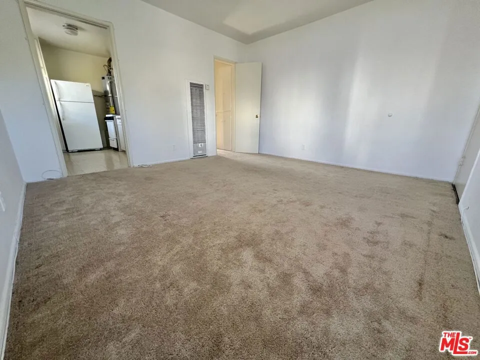 Bright and spacious upstairs studio in the heart of Santa Monica! This charming unit features a generous living area with plush carpet floors, a large full kitchen with ample counter space, a fridge, and a stove/oven. The well-appointed vanity area offers great storage, and the closet includes dual hanging racks for extra convenience. Enjoy a nice enclosed shower and on-site community laundry. Ideally located near shops, cafes, and eateries, with the beach just a short drive away – don’t miss this fantastic coastal living opportunity! *One small parking spot available to rent separately for $100/mo*