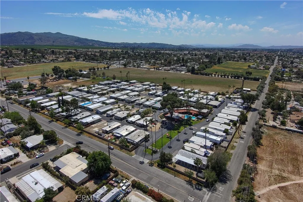 This cozy home is situated in a 55+ gated community! There’s a gate as you come through the side covered porch. Also has turf and big tiles. The lot is fenced from the side porch to the back of the house. The washer and dryer are on the side of the house under the car porch. As you walk inside the well kept home, you will see a good sized living room. The entire house has laminate flooring. If you go left, you will find the spacious Main Bedroom a king sized bed can fit in it. The bedroom has four closets and Fourteen-built-in drawers for storage. The bathroom has a vanity, tub surround and doors with handles. Then you can go see the kitchen with lots of storage and has plenty of room for a small dining table. There’s plenty of space to put barstools at the bar. Behind the house you will see a large lot and two sheds. It’s close to the community clubhouse, pool and spa. This property is close to shopping centers and not too far from the beautiful town of Idyllwild. Don’t miss out on this home!!