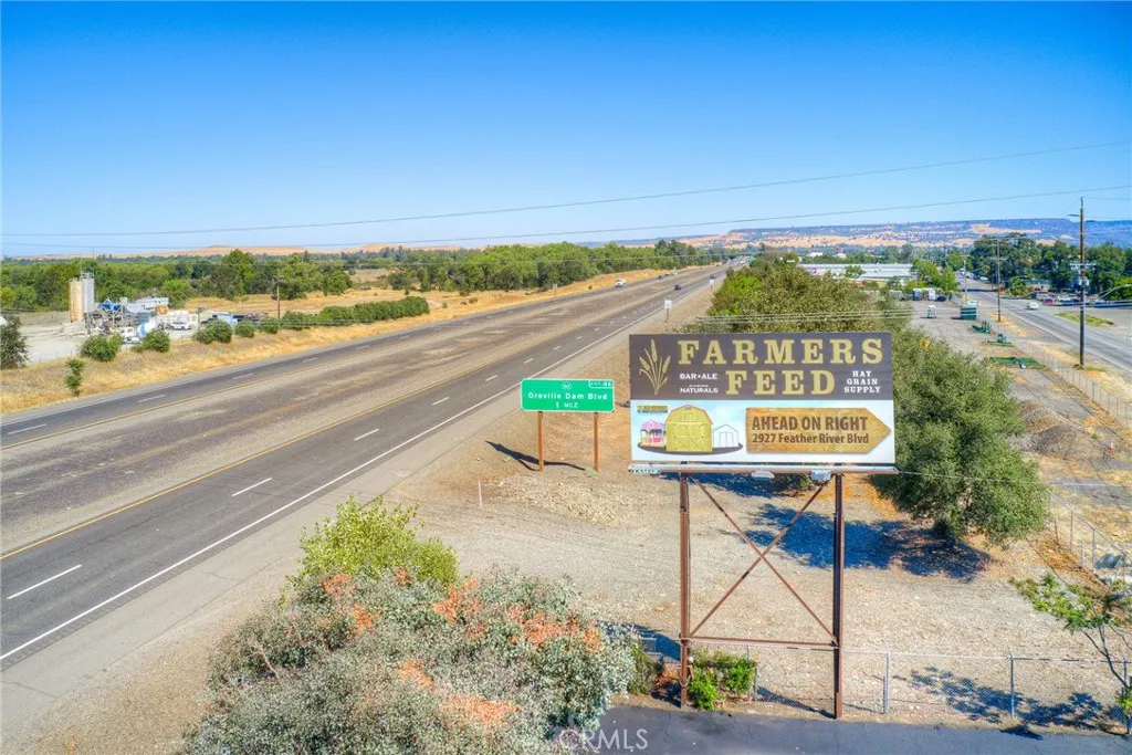 OFFICE & WAREHOUSE WITH GOOD HWY 70 VISIBILITY! AMPLE PARKING INCLUDING FENCED YARD! Location! Location! Location! Only 30 minutes to Chico to the north and Yuba City to the south. This property is right next to HWY 70 and offers plenty of paved parking for the 2,509 square feet of carpeted office space with central heat and air, 2,011 square feet of warehouse space with suspended gas heaters and Two oversized doors opening onto a large paved and fenced area. There are two bathrooms, one with a shower. there is also a kitchenette with plenty of storage. This property has a newer roof, New sewer connection and easy access to Hwy 70 which makes it a great place to start or relocate your business.