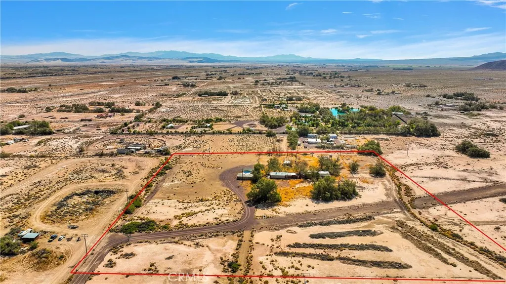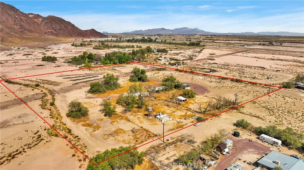Start your own ranch by the Newberry Mountains as golden eagles soar overhead. This ranch property sits on 10 acres, located off a secure private road with it’s own well. Built in 1940, the 1,166 SqFt home features classic architectural cues from the early days of desert living including thick wooden doors, iron-accented windows, a centerpiece brick-inlaid wood-burning stove and vintage appliances. If you know anything about ranches, you know it ain’t all about the living quarters. There is over 5,000 SqFt of outbuildings on this property, including garages, workshops, washrooms, vehicle storage, a tack room, large cinder block garage and more! Horses are already welcome with two shelters on site and more. There is a pond behind the home made of volcanic red rock, perfect for ducks, chickens or even koi fish. A retro concrete swimming pool with waterslide and deck is included in the sale. This is the perfect starter ranch, or the ideal site for an off-road enthusiast looking to build a motocross track and have easy access to the open desert for their sand toys. This property has an amazing view of the Newberry Mountains, home to a large population of desert bighorn sheep. The full 10 acres is a combo of two parcels, APN 0528-081-61 and 0528-081-62.