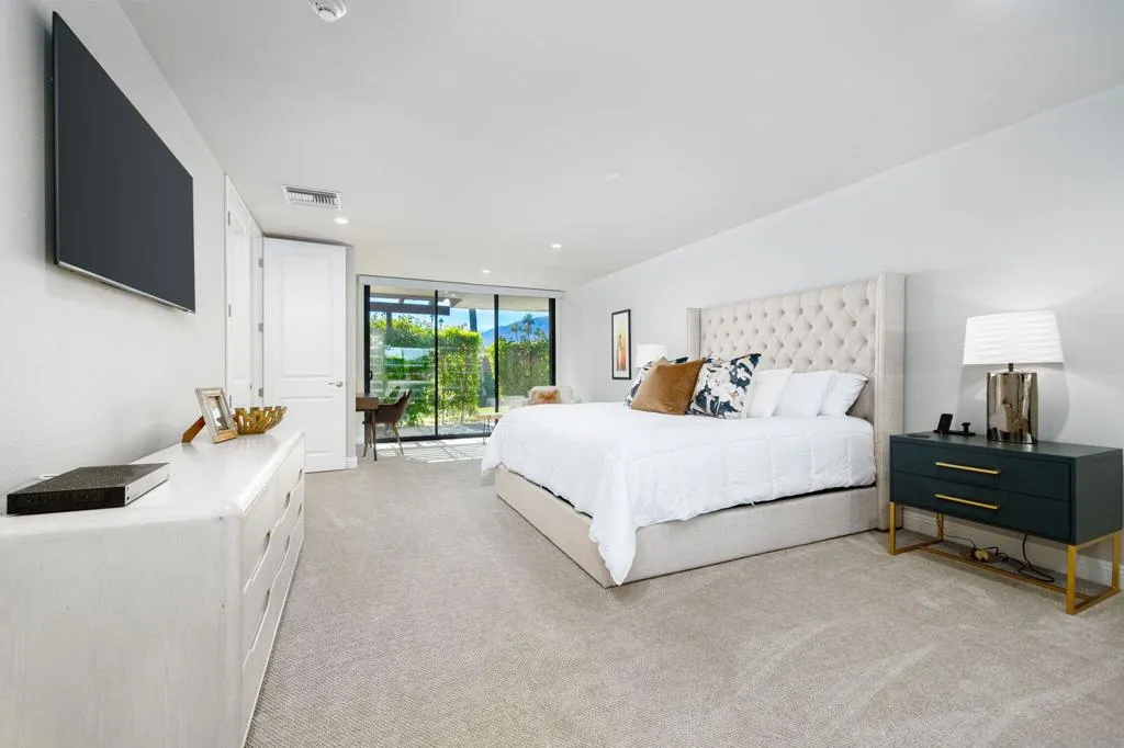 All the ingredients of a luxurious FIVE STAR desert retreat. As soon as you open the front door, you enter a captivating space that feels both welcoming and sophisticated. Recently remodeled and distinctively appointed, this home’s open concept beautifully integrates the dinning, kitchen and living room areas. Everywhere you look, there are sliding glass doors showcasing the south facing views and bringing in lots of soothing natural light. The spacious primary bedroom suite has a tranquil and elegant ambiance. Two guest bedrooms means friends and family will be well cared for. There is also a cozy den with a pull-out couch in case the guest list grows. An expansive wrap around patio that takes full advantage of an inspiring view across the lake to the golf course and mountains in the distance. The closest community pool and spa are just steps away from the back patio. The owners social membership is transferable so seasonal guests can also enjoy The Springs’ gorgeous remodeled clubhouse, other fun club amenities and social activities. The Springs is close to the airport but not too close; minutes from the casino, world class shopping, the McCallum theater and a wide array of tempting restaurants. Sounds like an invitation that you can’t refuse!