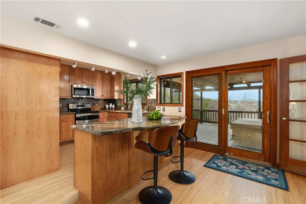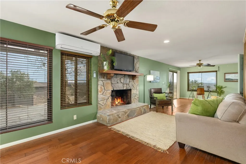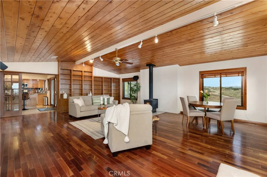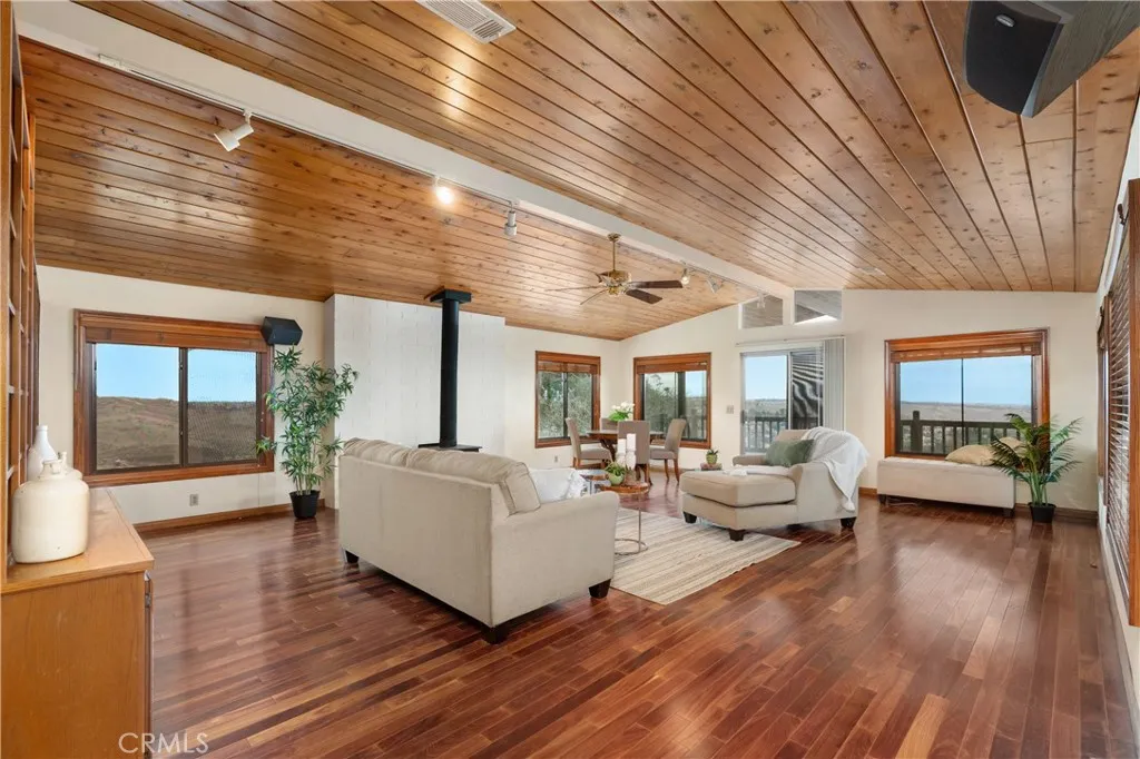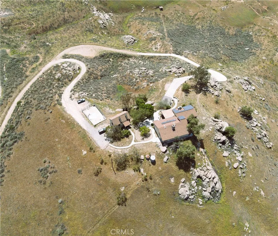Imagine living in a serene hilltop custom-built home designed for luxury and modern convenience. Nestled in the Box Springs Mountain range, this home offers both privacy and expansive open living spaces. Perfect for those seeking off-the-grid living, this 12-plus-acre paradise offers the perfect blend of self-sufficiency and connection with two wells, solar panels, and two septic systems. Plus, you’re connected to electricity with the public utility providing extra peace of mind. Step inside to discover exquisite hardwood flooring and broad windows that flood the space with natural light and showcase breathtaking panoramic views. The vaulted natural wood ceilings in the living spaces provide a spacious atmosphere. There are two main living rooms, which both offer places for entertaining, dining, and enjoyment of this hill top paradise. The dining and living rooms boast unparalleled views of Mount Baldy, creating a mesmerizing backdrop for every meal and moment. Picture yourself relaxing on the living room balcony, taking in the stunning west-facing vistas of the mountains and twinkling city lights. With two bedrooms upstairs and a primary suite downstairs, this home provides fantastic flexibility for any lifestyle. The lower bedroom in the main home could easily be converted into a JR ADU, offering great potential for multi-generational living or additional revenue. Additionally, the property features a detached ADU which sits over the two-car garage. Also home has a half-court basketball court. The ADU has its own living area, kitchen, bedroom, and bathroom (450 sq ft +/-)—a fabulous bonus for guests or potential rental income. Zoned as R1, there’s potential to subdivide the property for future investment or development opportunities. This hilltop retreat is your chance to experience the best of both worlds—secluded, self-sustaining living with the comfort and connection of modern amenities. Don’t miss out on this unique opportunity to call this remarkable property your home.