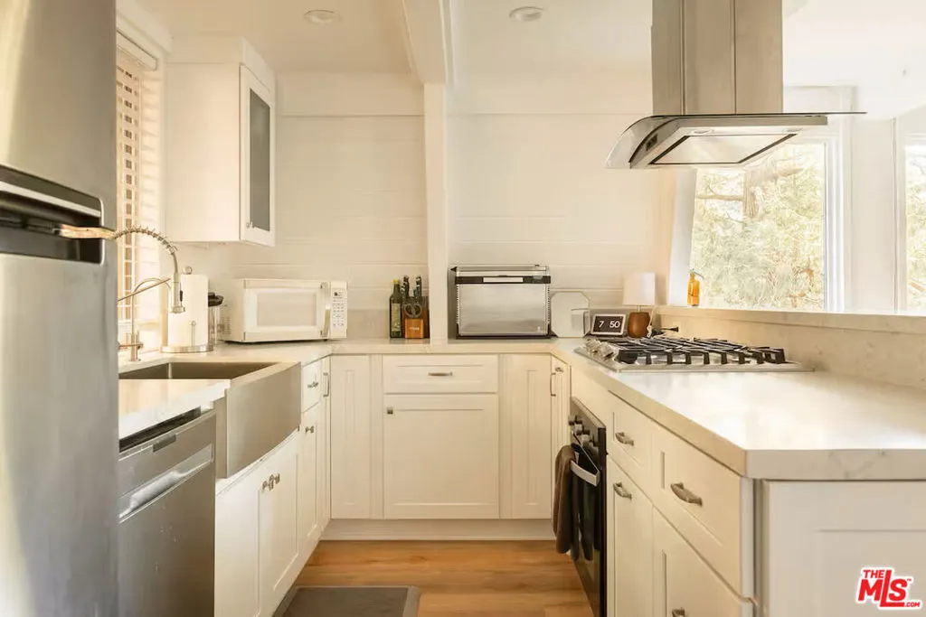 Experience modern luxury in this fully furnished Mid-Century home nestled in the woods. A stone’s throw away from Goodwin’s market, charming shops, multiple dog parks, and Lake Gregory. Lake Gregory is a hidden gem surrounded by the refreshing cedar and pine forest of the San Bernardino Mountains. This picturesque lake provides a serene escape for families, offering swimming, fishing, boat rentals and even,an inflatable waterpark. It serves as a delightful destination for those seeking a cool respite from the summer heat. Crestline boasts year-round seasonal activities. With just a short drive to the slopes of Big Bear, enjoy a variety of outdoor adventures. Whether you’re looking to relax by the lake or hit the slopes, Crestline offers a diverse range of recreational opportunities. This three-story mid-century modern home was built in 1974 in the historic San Moritz neighborhood. The space has been artfully renovated to a modern luxury standard while preserving beautiful original elements from the 70s. This chalet is a popular AirB&B destination with outstanding reviews and is consistently rated as a guest favorite. With several parking spaces and level entry (a rarity for the mountain) allowing possible room for a camper or boat. Relax in the soaking tub after a long day on the slopes. Cozy up by the fireplace, or enjoy movie night on the oversized dream sofa with the home theater featuring a 100″ 4k projector and surround sound. After a delightful day at the lake,relax on the newly renovated deck while savoring a delicious meal cooked on your grill. Perched atop Altdorf drive, across from private land, this property offers a sense of privacy that is hard to find. This beautifully renovated cabin, completed in 2021, offers an unparalleled blend of modern convenience and natural beauty. With cutting-edge smart home features, you can control lights, temperature, and air conditioning with just your voice. Situated just a short drive from LA, it is perfect for those seeking a peaceful sanctuary. Whether you’re looking for a private home or an exceptional AirB&B opportunity, this property combines the best of both worlds:luxury living and stunning natural surroundings. Don’t miss out on the chance to experience this move-in-ready retreat, where every detail has been thoughtfully designed to ensure your comfort. Schedule an appointment today to experience its unique charm first hand.