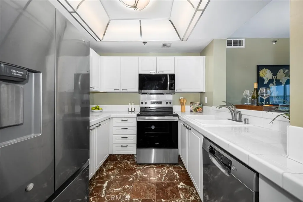 This fantastic ninth floor unit with an amazing view of the ocean, Catalina Island, Queen Mary, the harbor, and sunsets waits for you. Unobstructed views greet your every day. High rise living, complete with a staffed front desk and 24 hour security, is the epitome of luxury. The amenities are many, and most, but not all, are listed below. The private balcony is the ideal getaway spot where you can daydream the hours away while enjoying the unobstructed view. This downtown location is the epicenter of activity including the Long Beach Grand Prix. Of course you can ride your bike on the path, walk on the beach, explore Pine Ave, enjoy Shoreline Village and appreciate The Performing Arts Center with its numerous performances. I’m not sure there is a better view to be had of the LB Grand Prix. You can be in the living room, kitchen, or either bedroom and the views never stop. One unique downtown feature of this building is…LOTS of parking! You have two spaces for yourself but there are tons of visitor spots, so have a party! And if that ‘s not enough, the kitchen appliances are ALL quite new. The range top boasts a nice warmer element for your cooking pleasure. The flooring was just installed last year. Even the heat pump was replaced this year, so no worries about heating and A/C for quite a while. Your laundry is tucked nicely away in a closet in the secondary bathroom. This unit is priced to sell, so come on by!