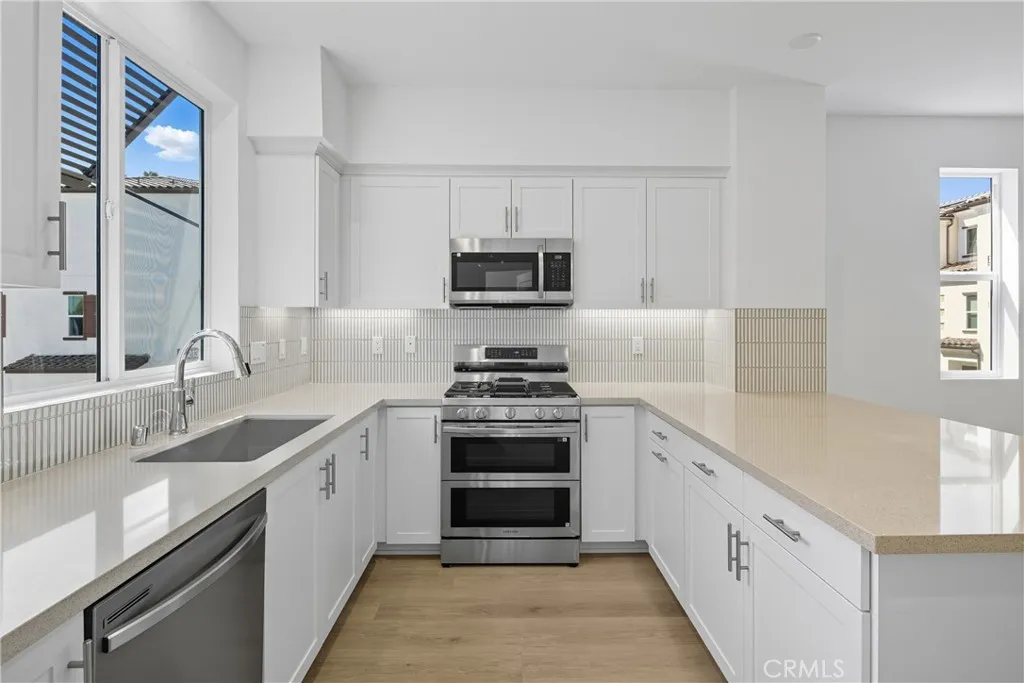 Designed for modern lifestyles, Residence One includes white shaker cabinetry, generous walk-in closets, an indoor laundry room with side-by-side hookups, and smart home technology—featuring a Ring doorbell, smart thermostat, and Brilliant smart switches.