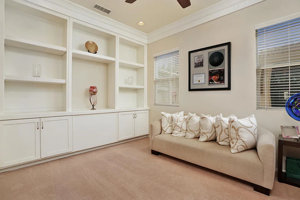 Move in ready, upgraded, former model home in the beautiful gated development Brenna at Capri. Enter into a courtyard with private outdoor fire pit and seating arrangement which is an inviting entrance to enter the home that features custom laid tile on all the main areas of the home, custom wall coverings, vaulted ceilings, built in surround sound, and windows looking out to the newly landscaped back yard and brand new pool! With views of the mountain tops from the steps of the new pebble tec, salt water, app friendly pool, this back yard has it all. Raised spa, natural gas fire pit, and a grass area for recreation. Covered patio is great for entertainment and relaxing year round. The kitchen has upgraded backsplash, pot filler, wine rack and wine cooler, bull nose granite countertops, and a center island. Master suite has an oversized bedroom with access directly to the pool and spa, with an en suite bath offering a large shower, built in soaking tub, and dual vanities. Guest rooms are all good size. One is en suite and the other two share the guest bath. the home also offers a powder room. This heavily upgraded property is priced to sell. Call today!