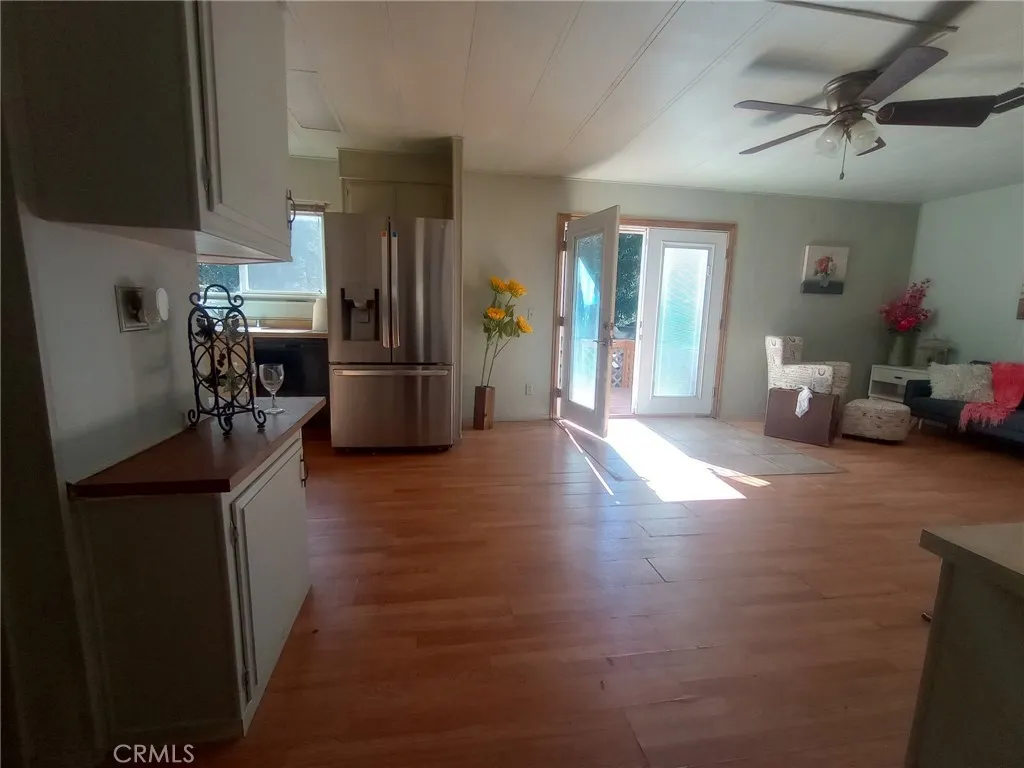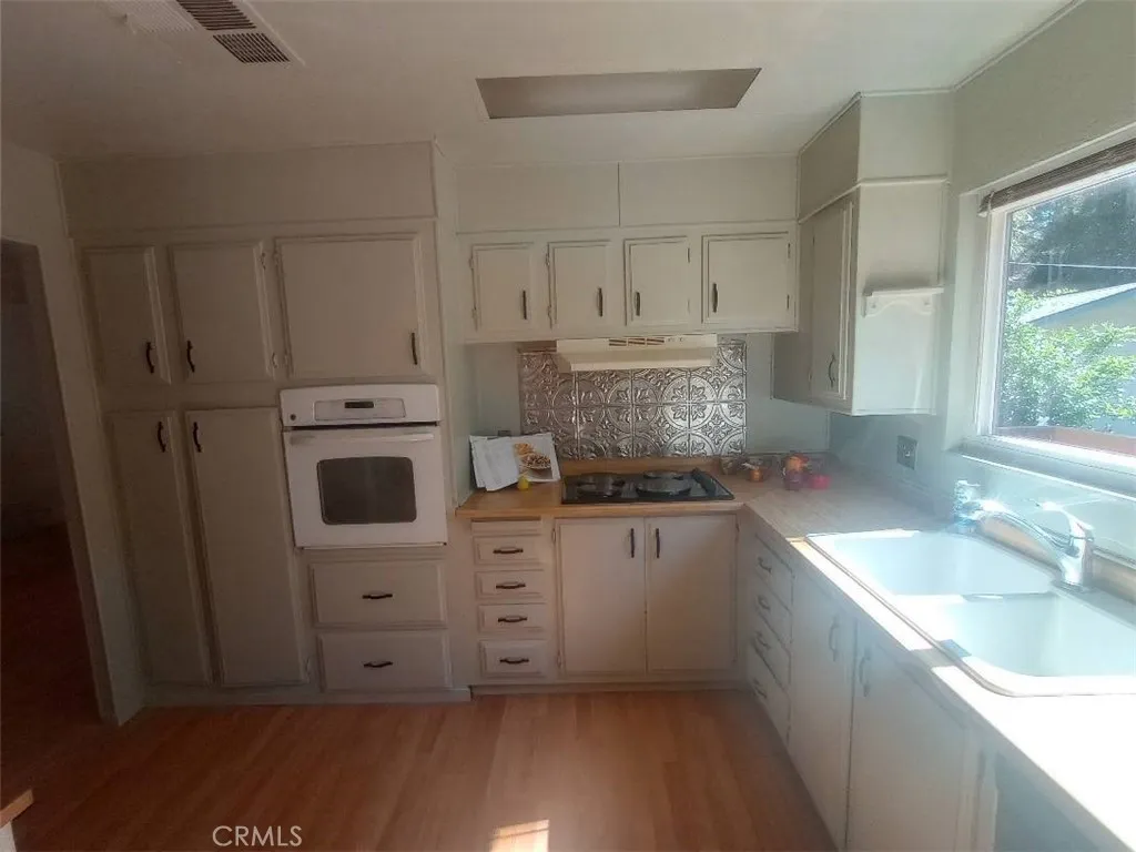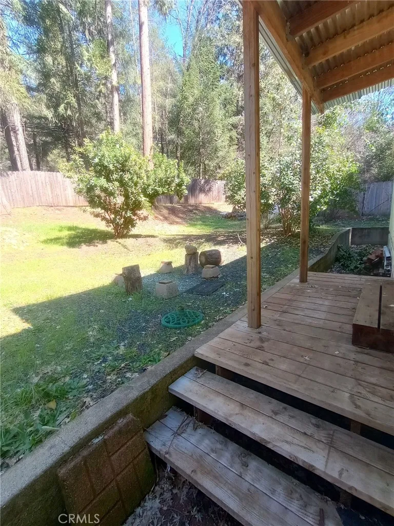 Discover the charm of mountain living in this 2-bedroom 2-bath home. This home features vaulted ceilings, a wood-burning stove, an oversized laundry room, and a built-in hutch for storage. The kitchen features a well-designed layout that opens to the main areas of the house. Unwind in the master suite, which includes a shower-in-tub design and plenty of storage space. Outside there is a beautiful wooden deck and a fully fenced-in yard. On this great sized lot, there are raised garden beds, waterspouts throughout the property, great pathways, and easy to maintain landscaping. There is a storage shed out back and an outbuilding in the front when you enter the driveway, the possibilities for use of that building are endless. This home is being sold as is and with a little TLC this will be the perfect place to call home! This property has the potential to shine bright. Take advantage of the affordable price and make this house a home that you’ll be proud of. With the cozy wood-burning stove, spacious backyard, and plenty of natural light, you’ll never want to leave.