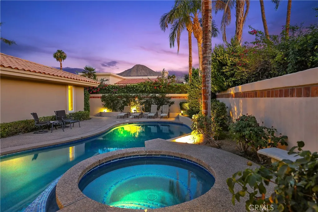 AVAILABLE NOW THROUGH DECEMBER 30. FULLY FURNISHED AND EQUIPPED!!! PLEASE SEE THE RATES BELOW. Located in prestigious Indian Wells near the Eldorado Country Club. The highly sought-after location between Hwy 111 and the Santa Rosa Mountains is the most desired city in the desert. Very private oversized 12,600 sqft corner lot. This custom home has 4,731 sq. ft. with a vast great room, wet bar, large separate family room, library, and 12′ ceilings. 6 bedrooms (library is used as a bedroom), 5 1/2 baths, numerous built-ins, pool and spa with cascading waterfall and relaxing covered patio. The home easily accommodates 12 people. Two primary suites, one at each end of the home. In addition to the 75″ flat-screen TV in the great room and family room, each bedroom has a large flat-screen TV, private bath, and patio. Large granite gourmet kitchen featuring double oven, five burner gas cooktop, LARGE island with preparation sink, and Sub-Zero Refrigerator. Luxury living at its best!!! Small pets considered. AVAILABILITY in 2025: May 1- Sept 30 $8,500 Oct 1- Nov 30:$9,000, Dec: $9,500. (LEASED 2026 January 1 – April 30 for $15,500/mo) Pricing and terms available for shorter stays. Rates are by season. Owner will consider short term lease. Prices vary by month and length of stay. PERFECT FOR VACATIONS, REMODELING, OR FIRE/FLOOD SITUATIONS.