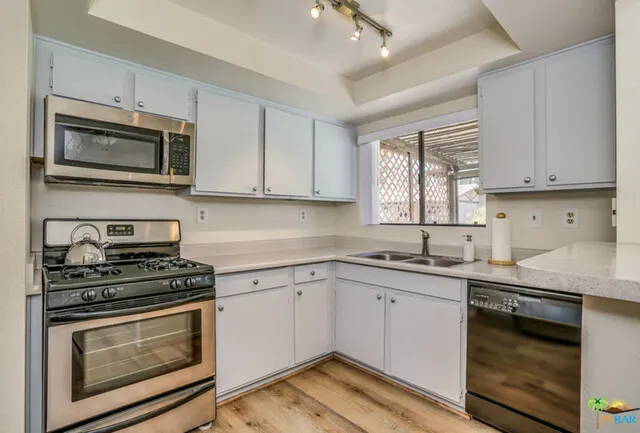 NEW PRICE! AND, POPCORN CEILINGS GONE. Come check out this single family home (no shared/common walls) located in a pet friendly gated community. Enter this move-in ready home through your landscaped private courtyard. Owner has installed new flooring, newer central a/c and heating, stainless steel appliances, new washer/newer dryer, new master shower, and new vertical blinds. Plantation shutters throughout. Wood burning fireplace in the living room. Direct entry from 2 car garage. With low HOA dues, amenities include tennis court and 2 swimming pools/hot tubs. Vista Del Montana is conveniently located close to the 10 Freeway, shopping, dining, and entertainment including Marriott’s Desert Springs Resort, Desert Willow Golf (with reduced rates for PD residents) and the McCallum Theater.