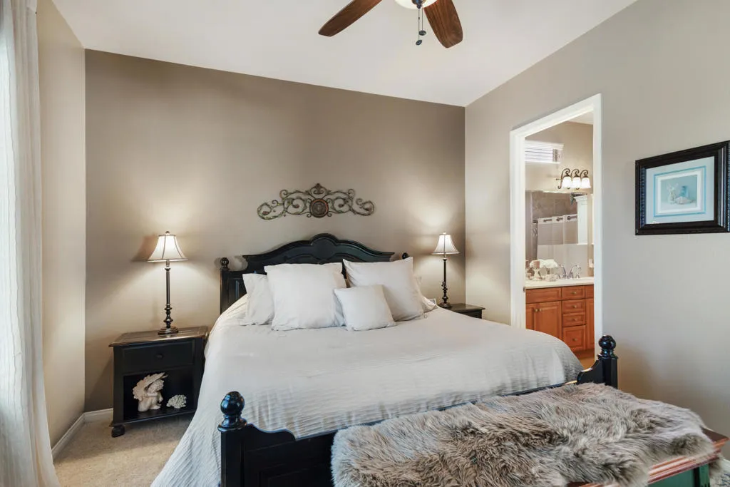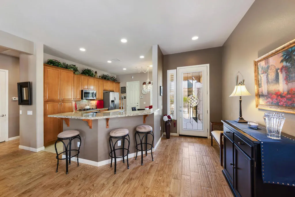 Home is located in a 55 and greater development. Lovely 2 bedroom 2 bath home. Beautiful entry through gorgeous, glass door, welcomes you to a fabulous great room. Kitchen with granite counters, stainless steel appliances, and all lower cupboards are roll out, as the pantry, making full use of all spaces. There is an island on rollers that adds to more storage. The master suite has King bed, fully tiled shower, dual sinks, walk-in closet and both baths have a nice built-in shelf unit. The guest room can be used as an office as you can see from the pictures. Sun city Shardow Hills has a lot to offer. Pickle ball, Tennis, Golf, pools and more. For Seasonal Lease. Leased November 2025 through March 2026.Available November 2026.