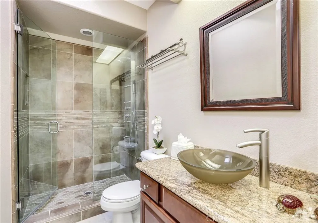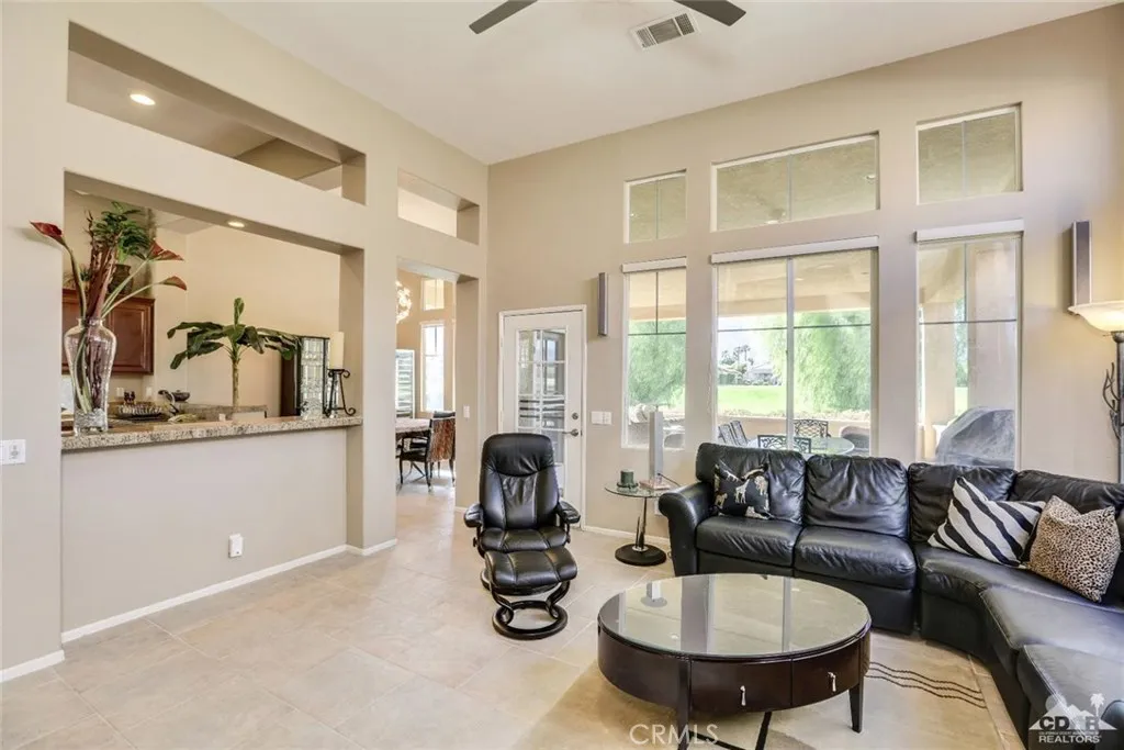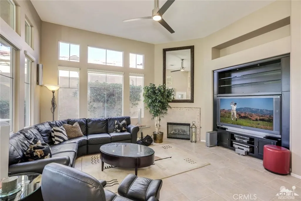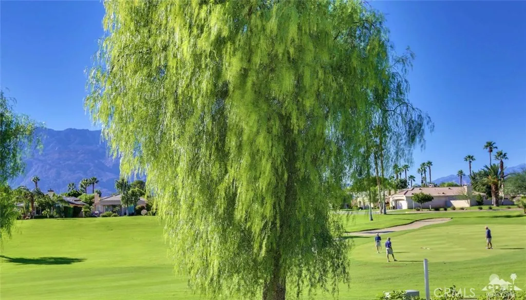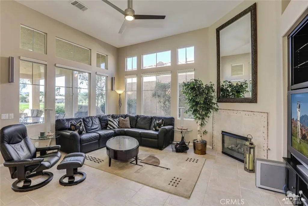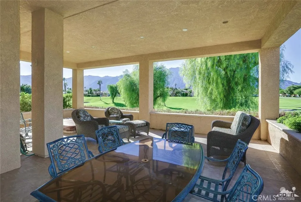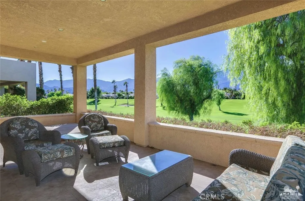 Stunning View Of Golf Course & Mountain Tops! Pristine Perfect Villa.. With a huge Covered Patio with your own private SPA! This is a must see VILLA with impressive Custom Upgrades. Turnkey Furnished, As you enter the gate to the front courtyard, you’ll notice the custom paver’s and beautiful potted Desert Landscaping Once entering Villa Through Front Door you notice the Living Room, Dining Room and Kitchen with spacious high ceilings and large windows thru-out. Exquisite furniture including a large black leather sectional, chair and ottoman are perfect for watching the 60 Flat Screen TV or enjoying the fireplace. Custom quality kitchen with Granite tops and upgraded appliances. Included is a 6′ Tall wine cooler.. 18×18 tile thru-out Villa. Two full baths, each have been completely redone to perfection. Master bedroom & Bath are Stunning… Laundry room with a full size washer/dryer. Patio includes in-ground SPA & outdoor Furniture.. This is a must see beautiful home!
