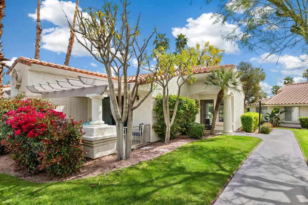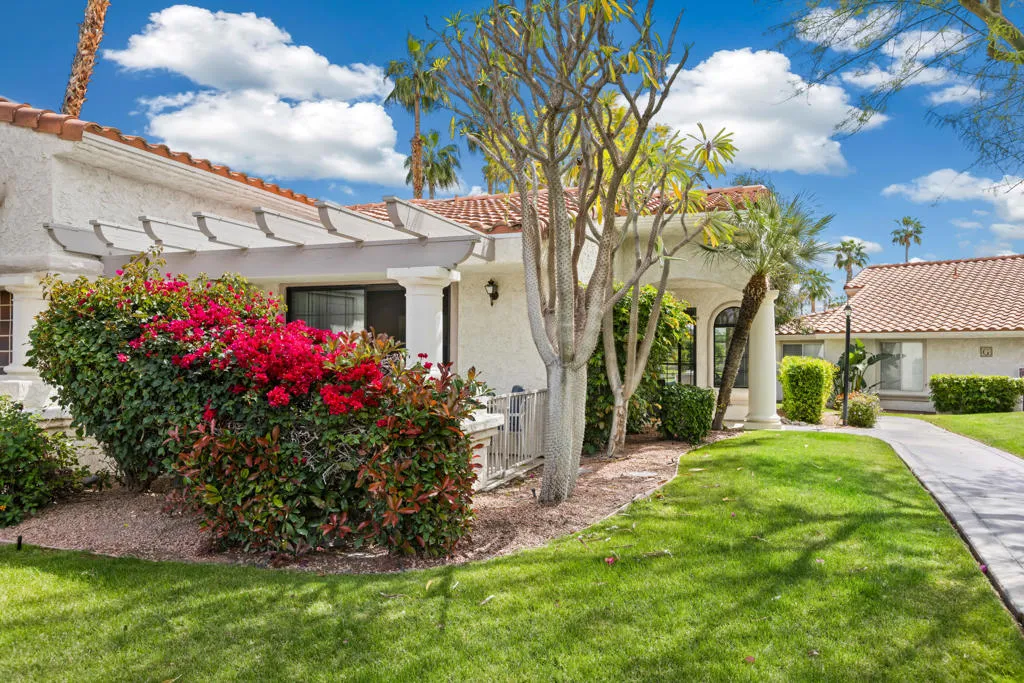 Vacation Rental. Minimum 7 night rental. Monthly welcome up to six months. No annual rentals. PS ID # 1237 Stunning single level Villa in a beautiful location. Feels like a single family home. With a large yard and two private patios. Panoramic views, high ceilings, private laundry, pet (dog) and child friendly. Near one of the four community pools and spas. A serene setting with a relaxing feel. Covered parking and private laundry. Your special vacation starts here and you will want to come back year after year. Rates: July-Sept: $109/night, Oct: $112/nt, Nov-Jan: $146/nt. April: $162/nt, May & June: $145/nt. $150 Pet Fee. $400 Refundable Security Deposit. $295 Cleaning Fee, $188 Admin Fee. All rent payments due before move in, plus tax if less than 29 days. 15% Discount on monthly rentals. Booked: Feb 1 through March 31, 2025 and 2026. NOT available as an annual rental.