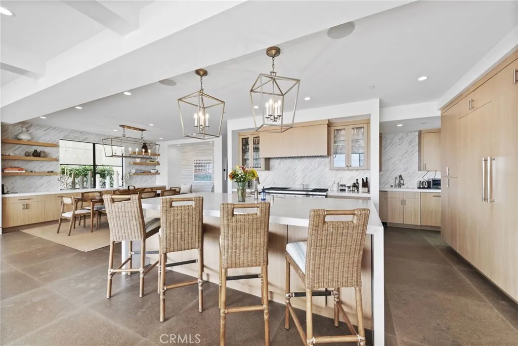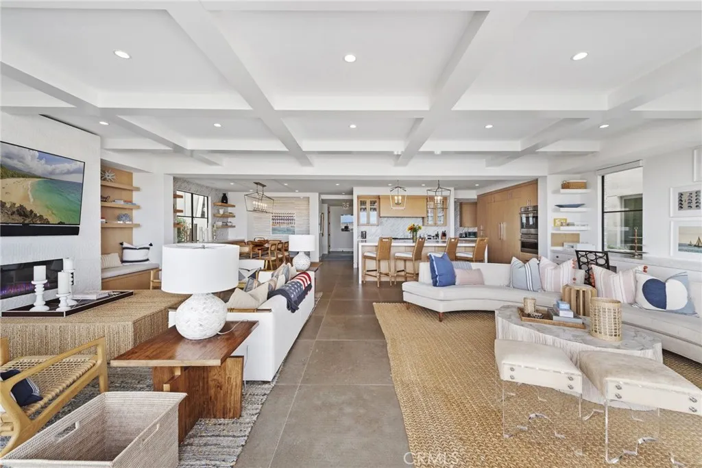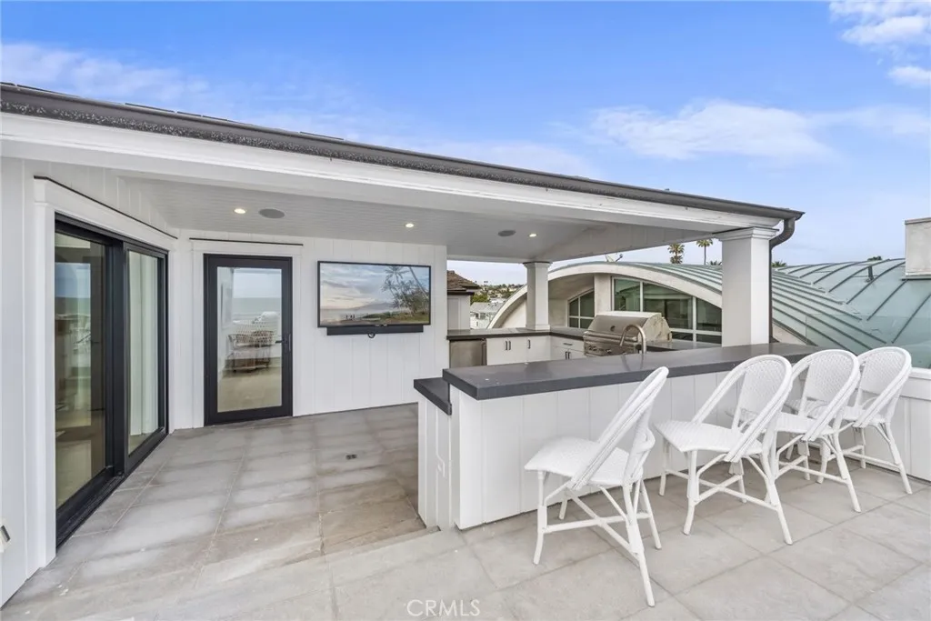 Secluded and set among the oceanfront of Peninsula Point, this fully furnished, 4-bedroom stunning property provides pristine interior spaces, tremendous views, and direct beach access. With an open impression, soaring ceilings, and walls of glass, views can be captured in all of the main rooms. Adjacent to the formal dining room with a built-in buffet and floating shelves – a most sophisticated kitchen supplies a SubZero fridge, massive island with breakfast bar, 8-burner range with grill, dual ovens plus professional grade wall-mounted oven, pantry with rollouts and a butlers pantry replete with ice-maker, second dishwasher, second microwave and prepping station. The family room with sprawling desk and consoles open to the living room with fireplace and reading nooks – sharing walls of glass that disappear to unveil the private, non-boardwalk, oceanfront patio. The expansive master retreat is enhanced with high beamed ceilings, a dual fireplace to the retreat room, an organized walk-in closet, a relaxing balcony, and an elite master bath – with separate spa and immense walk-in shower, dual vanities and a glass window to soak in the views. All three secondary bedrooms are ensuite with custom designer touches in each. The brilliantly designed the upper level includes a bonus room (that can easily be a fifth bedroom) a full bath and illuminated by skylights. The rooftop deck with unbeatable ocean, Catalina and coastline views includes a covered, fully equipped kitchen with built-in BBQ, Green Egg smoker, fridges, sink, breakfast bar, outdoor TV alongside a sunbathing deck, outdoor dining, and seating surrounding an outdoor fireplace. Additional features include a glass elevator accessing all levels, exquisite under cab lighting throughout, and a brilliant laundry room. Newport Beach Oceanfront lifestyle with direct beach access, 3 car parking and proximity to renown amenities and the iconic surf spot “The Wedge”.