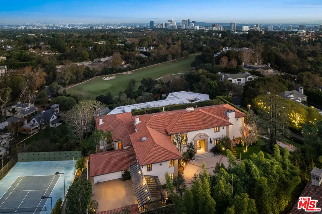 Once in a generation opportunity to acquire one of the most amazing important view estates in Bel Air. Located on one of the most prime streets in the city with unobstructed head-on views spanning from downtown Los Angeles across the city to the ocean. A true classic Bel Air estate with incredible high ceilings and scale with the most beautiful rooms in LA. Enter from the large motor court to the 2-story grand foyer with sweeping staircase, magnificent living room, paneled library/office, gourmet kitchen, spectacular family room, bar, and breakfast room. There’s a beautiful primary suite with separate dual baths and closets plus office, as well as 4 additional bedroom suites. The grounds and privacy are second to none, there is a championship size tennis court, beautiful lawns, walkways, fountains, and swimming pool. A magical setting, an amazing estate with enormous upside potential. Offered at an incredible and irreplaceable value. Shown to prequalified clients only.