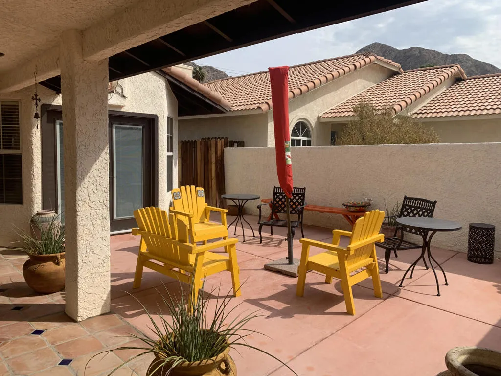 High up in the La Quinta Cove with majestic mountain Views this 3 bedroom 2 bath pool home is perfect for entertaining. Front gated courtyard offers privacy for front door. Large master w/ upgraded vanity in master bathroom. Kitchen has granite tile counters and backsplash. Ceramic tile flooring throughout the home, ceiling fans and a cozy wood fireplace in living room. Recently new desert landscaping in front yard. Close to Old Town La Quinta,restaurants and shops, Fritz Burns Community Park. Enjoy hiking and walking trails nearby. This is the perfect vacation rental. Perfect rental for the horse show, Coachella Festival & Stagecoach Call for summer rates!