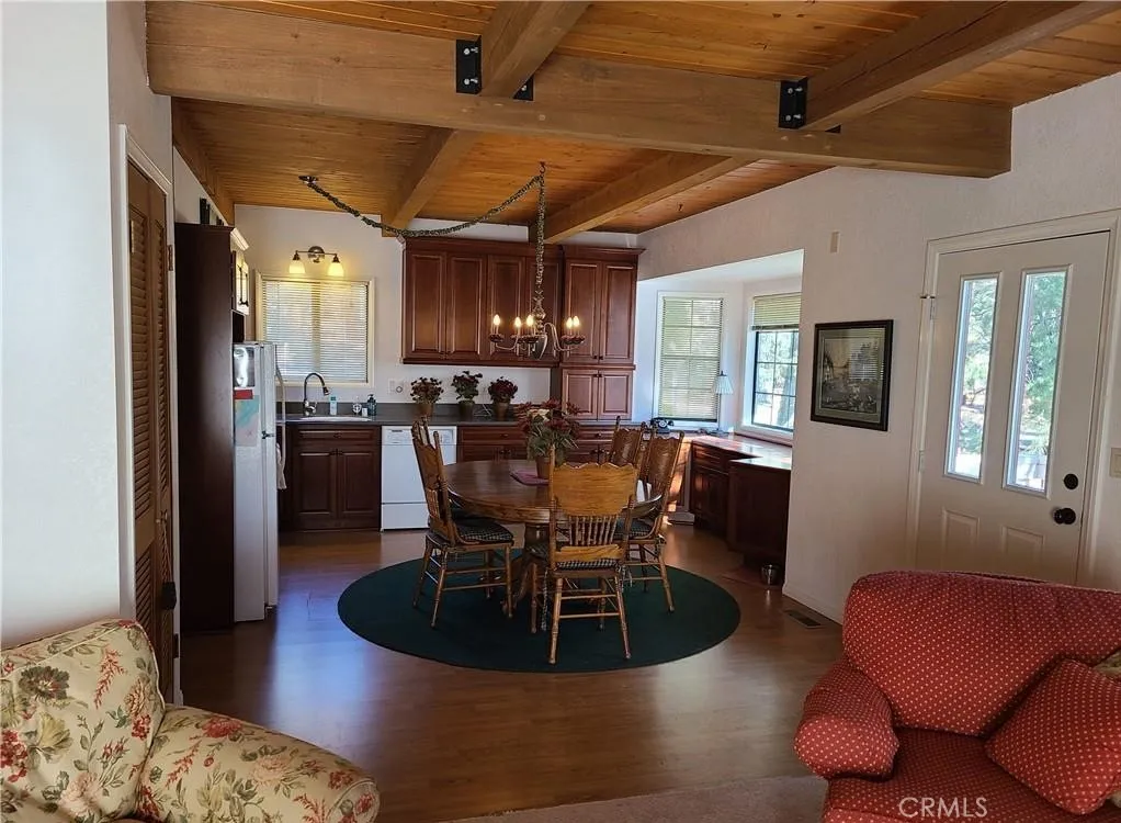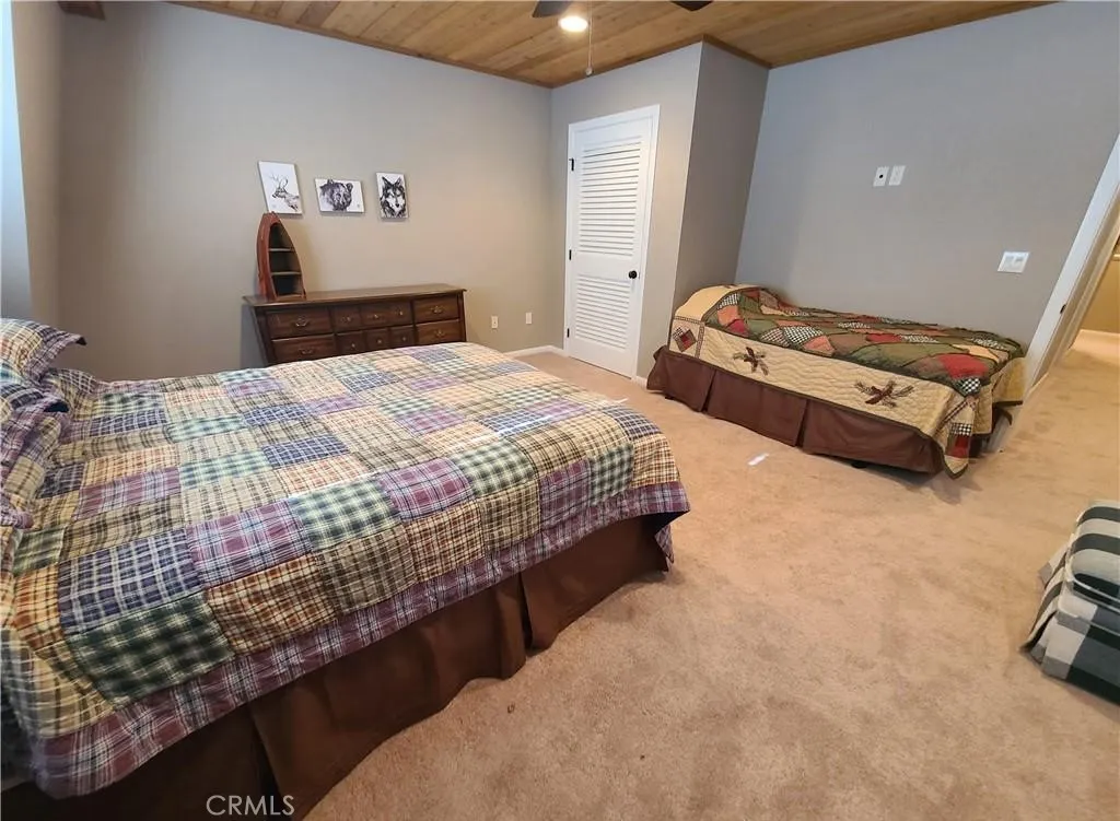 This lovely mountain home is immaculate, like new, barely used, and fully furnished—a roomy five-bedroom custom property on .25 acres. The view stares at the mountains to the south and peak-a-boos Bear Mountain through the trees. The property sits on the curve of a corner overlooking Van Dusen Canyon with hiking trails into the National Forest. The exterior is a no-care vinyl that mimics well-cared-for wood and looks newly painted. There is a small fenced area for dogs in the rear, a side deck, and two wonderful rear decks to take in the view. There’s also a patio on the entry side. Almost everything stays except the paintings. Don’t worry about the little things like cleaning supplies and the vacuum; it all stays. The family room has a huge sectional plus room for games and TV. There’s a workshop underneath and a separate cemented step-down storage that is begging to become an indoor theater. There’s also an ample size laundry /utility room. You’ll find storage everywhere. We can’t say enough about the condition of this home, you will have to see for yourself. If you desire large open spaces for everyone, this could be your ideal cabin.