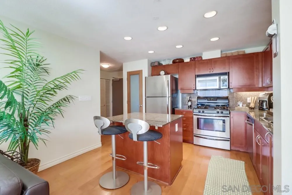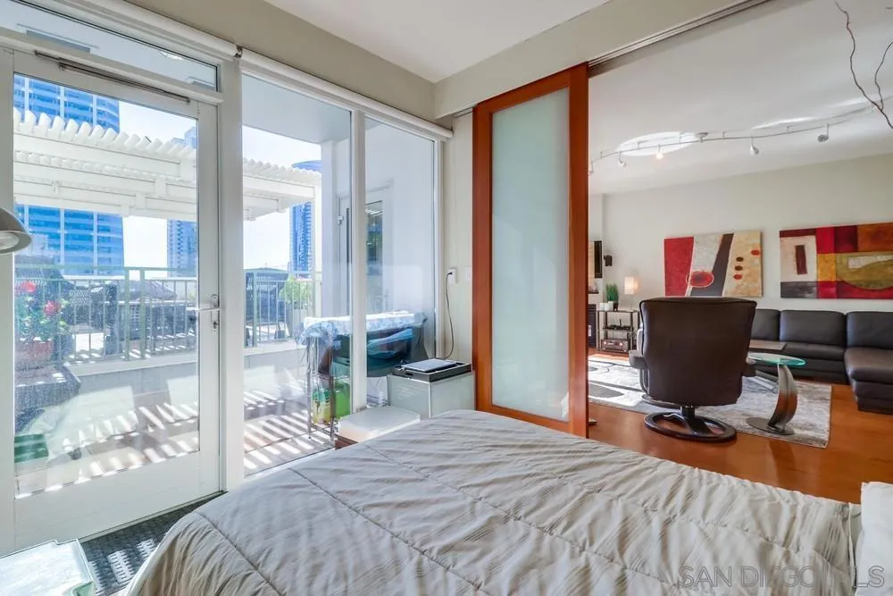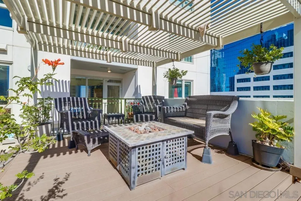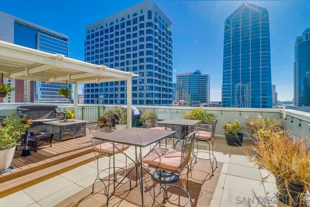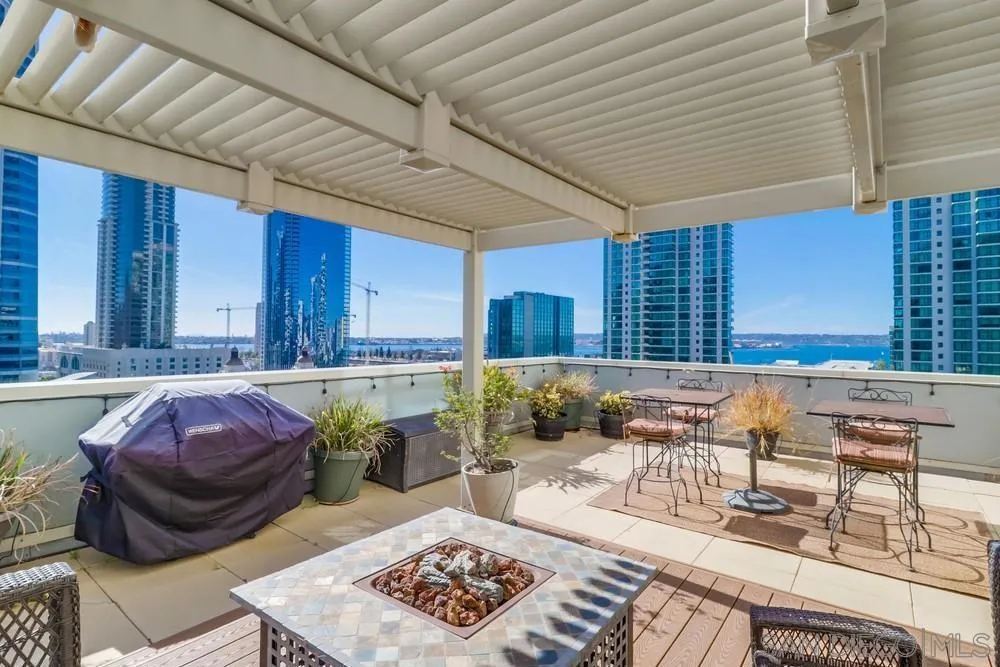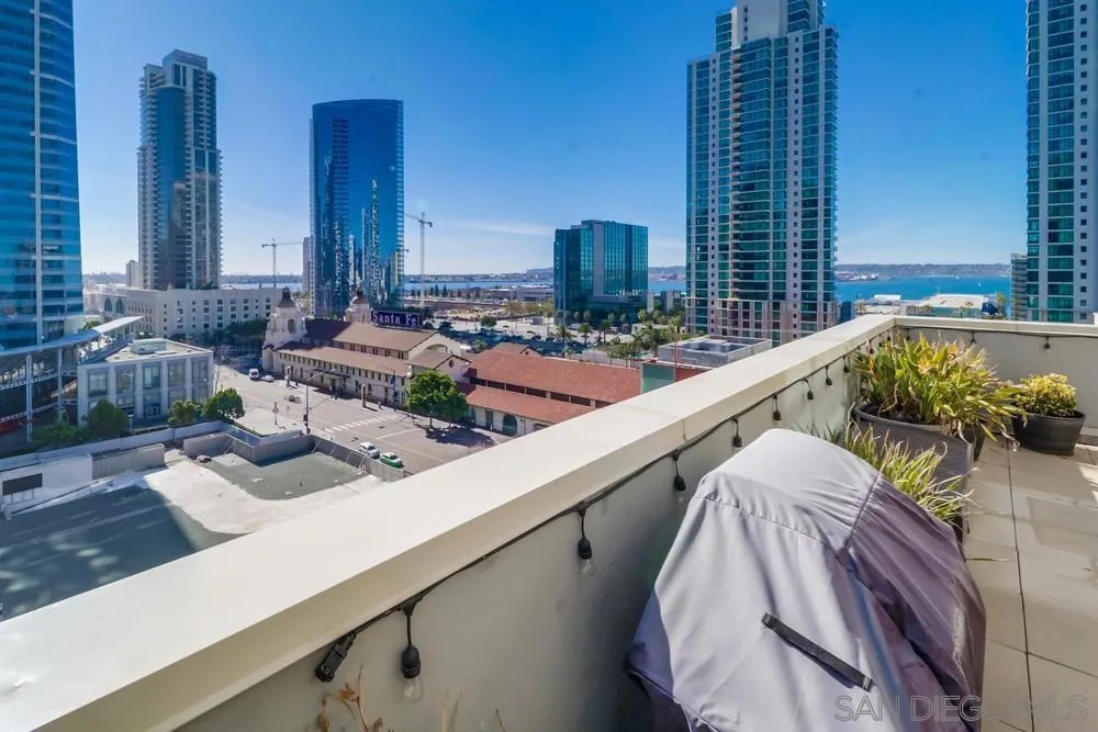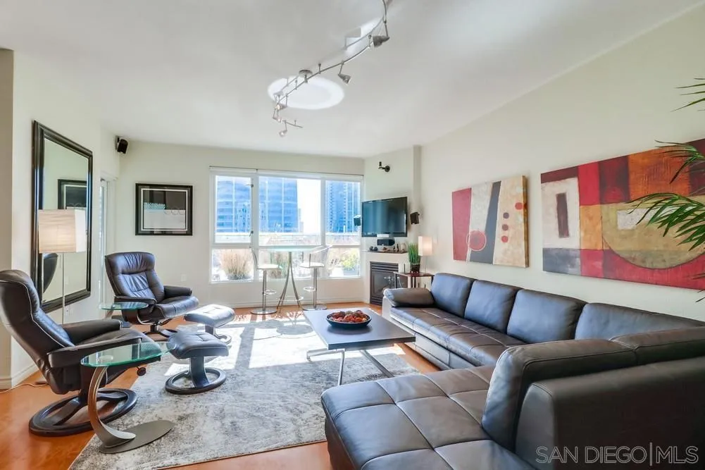 Welcome home to this south-facing, impressive TURN-KEY FURNISHED residence, in the highly sought-after community of Treo, located in the prime Columbia/Little Italy village. Enjoy year-round indoor/outdoor living in Treo, a 22-story, highrise, with resort-style amenities, 24-hour concierge, and security. This one-of-a-kind FULLY FURNISHED UNIT with HUGE 650 sq ft PRIVATE PATIO w BAY & CITY VIEWS. You will appreciate the light, bright & airy vibe throughout this spacious 1-story, 2 bed/2 bath, 1107 sq ft home with 1 parking and 1 storage unit. A full-size kitchen with granite counters and stainless appliances provides the perfect space to whip up culinary delights and entertain guests. This home also features a stackable washer/dryer in-unit, a/c, and fireplace. Building amenities include a pool, jacuzzi, gym, BBQ, bike storage, and community center. BEST LOCATION DOWNTOWN, WALKING DISTANCE TO EVERYTHING: the wildly popular Little Italy Farmer’s Market, Waterfront Park, Seaport Village, Balboa & Petco Parks, Gaslamp Quarter, fantastic dining, cafes, bars, boutiques, and entertainment. Close proximity to the train, trolley, airport, beaches & more. Don’t miss the opportunity to call this residence home – schedule your tour today and experience the true magic of the Columbia/Little Italy area living! We welcome all Dep’t of Defense (DOD). We’d love to work with you, so if you’re looking for something different, please inquire about Downtown Condo Guys other listings.