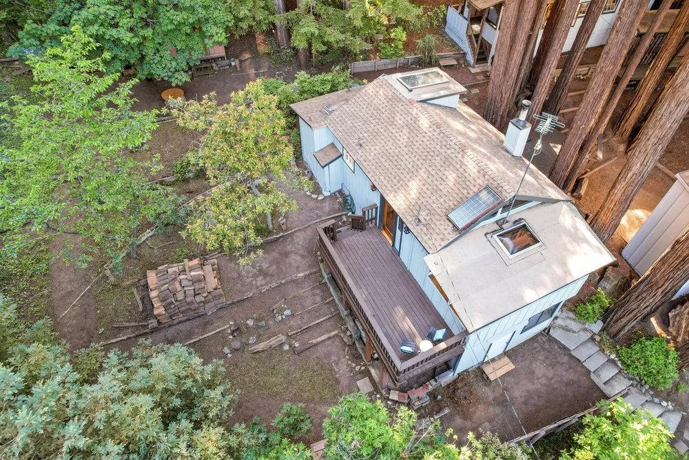 Opportunity knocks! 2 homes, abundant parking, your mountain retreat awaits. Misty mornings will be spent watching the sunrise as the birds sing softly filling the air w/ harmony. Manicured redwood grove balances the full sun green-garden beds on either side of each home. Main house boasts 3 decks for dining alfresco w/ friends on breezy summer days. Dining room solarium frames the majesty of the forest w/ mountain peaks in the distance, bringing natural light to bath the interior w/ warmth. Open floor plan allows for easy living, w/ a loft bedroom, 2nd bedroom+ the downstairs basement could become a 3rd bedroom. 2nd unit w/ charming details throughout: stained glass front door, whimsical enclosed porch & don’t forget the extra large French windows off the living room to bring in fresh air. Close to Highlands County Park, hiking trails, creek swimming, tennis and more, 5 minutes to Ben Lomond and Felton Amenities, 10 miles to Santa Cruz beaches & a quick commute to Silicon Valley.
