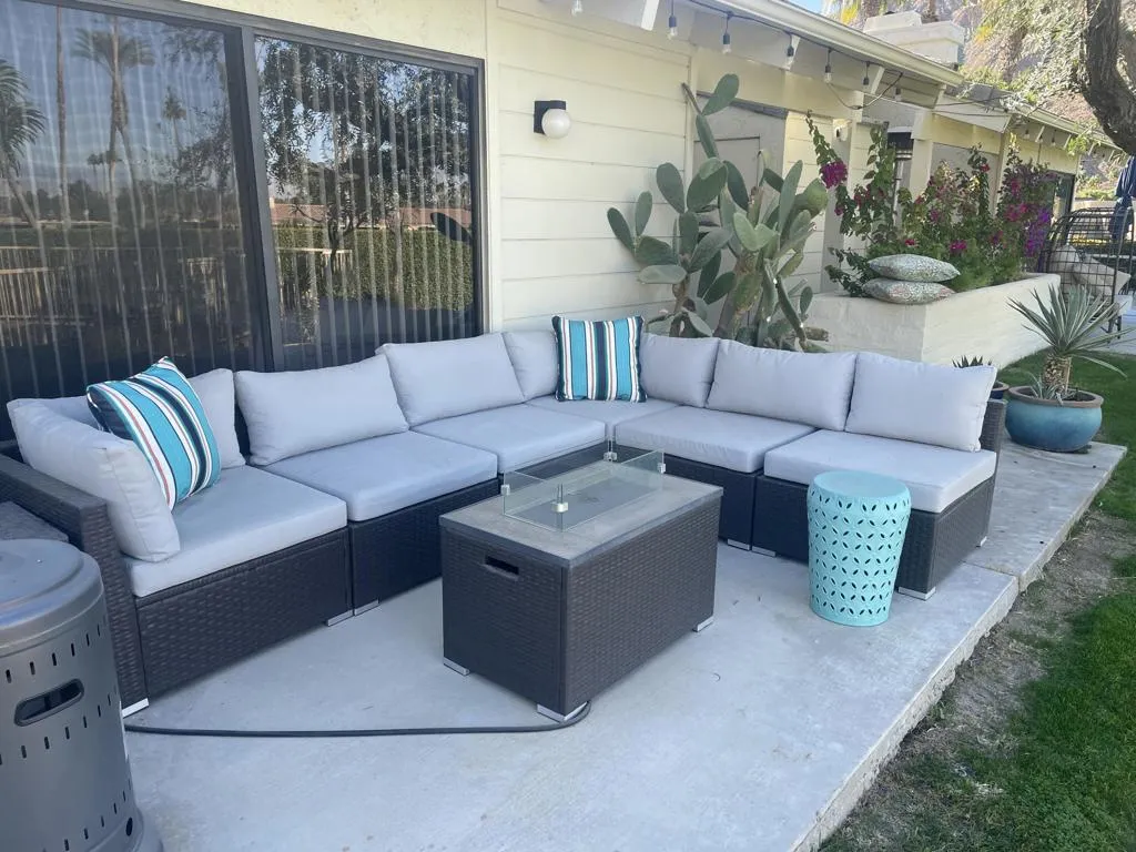 AVAILABLE Nov, 2025. – Feb 2026. Leased March/April 2026. This Adorable 3 Bedroom – 3 Bath updated condo with Mountain and Pool Views~ located behind the gates of Indian Wells Country Club in Mountain Cove. The bright, open floor plan is spacious with lots of natural light from the vaulted wood beam ceilings out to the magnificent views of the mountains! This tastefully decorated home offers 3 bedrooms each with their own en-suite bath, private patios and TV’s in each room. The Primary Suite has a King-size bed and Walk-in closet. Guest Bedrooms have Queen-size beds. The Living Room offers a cozy Fireplace, Desk and a 65 inch TV. The beautiful updated bright white Kitchen has custom cabinetry with all the Kitchen amenities, Dining table and a Patio leading out to the BBQ. Features Tile throughout and Ceiling Fans in each Room. Interior Laundry room. Step out to the Patio; perfect for entertaining with views of the Pool and Mountains~just steps to the community pool. Golf Cart available. Minutes away from the BNP Paribas Tennis, Golf, Dining and Shopping experiences of upscale El Paseo in Palm Desert.