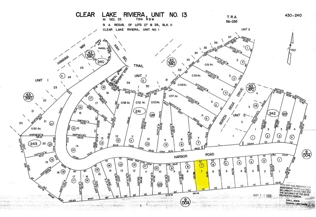 Nestled in a quiet, low-traffic neighborhood, this large lot offers plenty of elbow room from neighbors and is surrounded by beautiful custom-built homes with lake views. The parcel features a gentle upslope from the road, allowing for reasonably flat driveway access and the potential for a new build with lake views of its own. Smaller trees can be kept for natural shade or cleared to create your ideal homesite. An abundance of local wildlife—including wild turkeys and deer—adds to the charm of this peaceful setting. A water meter box is already in place (meter still needed). Conveniently located just minutes from the Riviera Marina, Riviera Elementary School, Riviera Hills Restaurant & Lounge, and the Riviera Shopping Center. A soils test is on file. Buyer to verify all information and confirm specific building requirements with Lake County and the HOA.