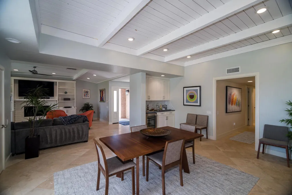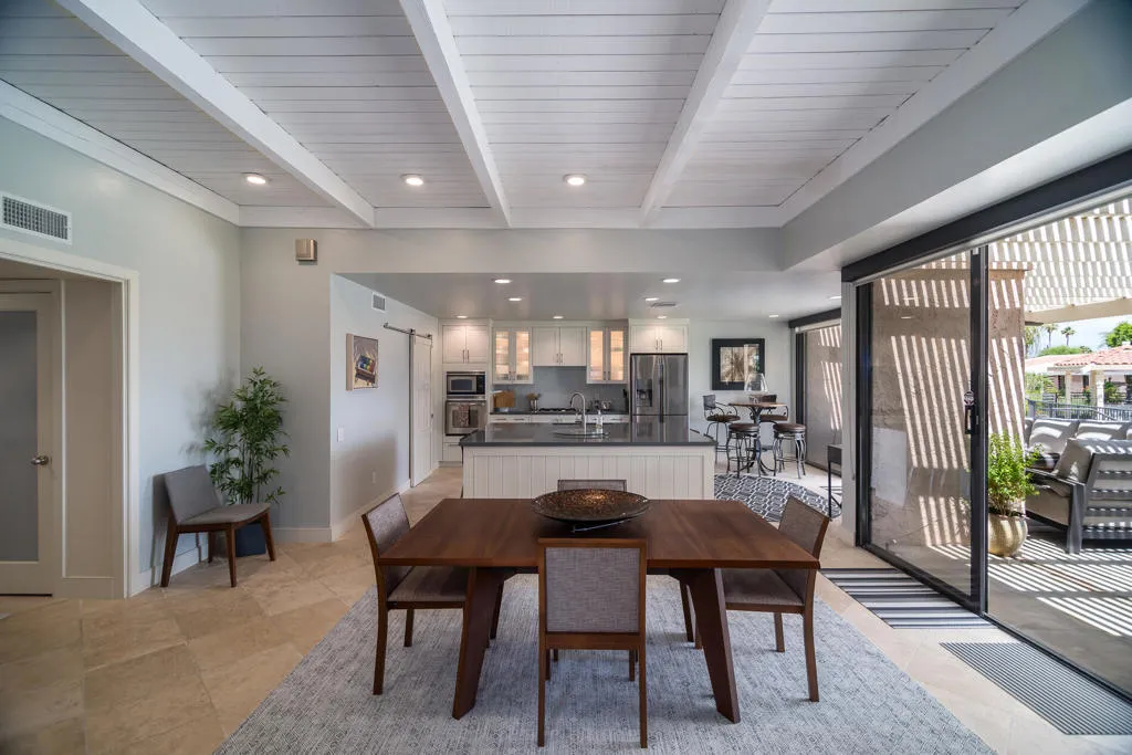 **UNAVAILABLE NOV 2025-MAR 2026**This beautiful Indian Wells condo has been completely remodeled. Located in Dorado Villas, an exclusive gated community enhanced by lush landscaping, 9 pools and spas, and 10 tennis courts – one of which converts to two pickle-ball courts. The kitchen has been redesigned to open up to the dining and living areas, creating an inclusive experience – perfect for entertaining or spending quality time with family and friends. Natural stone floors are found throughout the main living areas – the bedrooms are luxuriously carpeted. The primary suite is pleasantly spacious and opens up to a private walled patio. In the bathroom, marble floors flow into the glass-walled shower which features an exquisitely detailed marble rose insert. Two guest bedrooms and baths complete the floorplan. The upgrades are abundant, including an expanded walk-in pantry is great for storage and hiding away appliances. A small office has been added near the living room. Dorado Villas is golf-cart-close to Eldorado CC and The Vintage Club. The desert oasis is ready for you to come relax and enjoy!