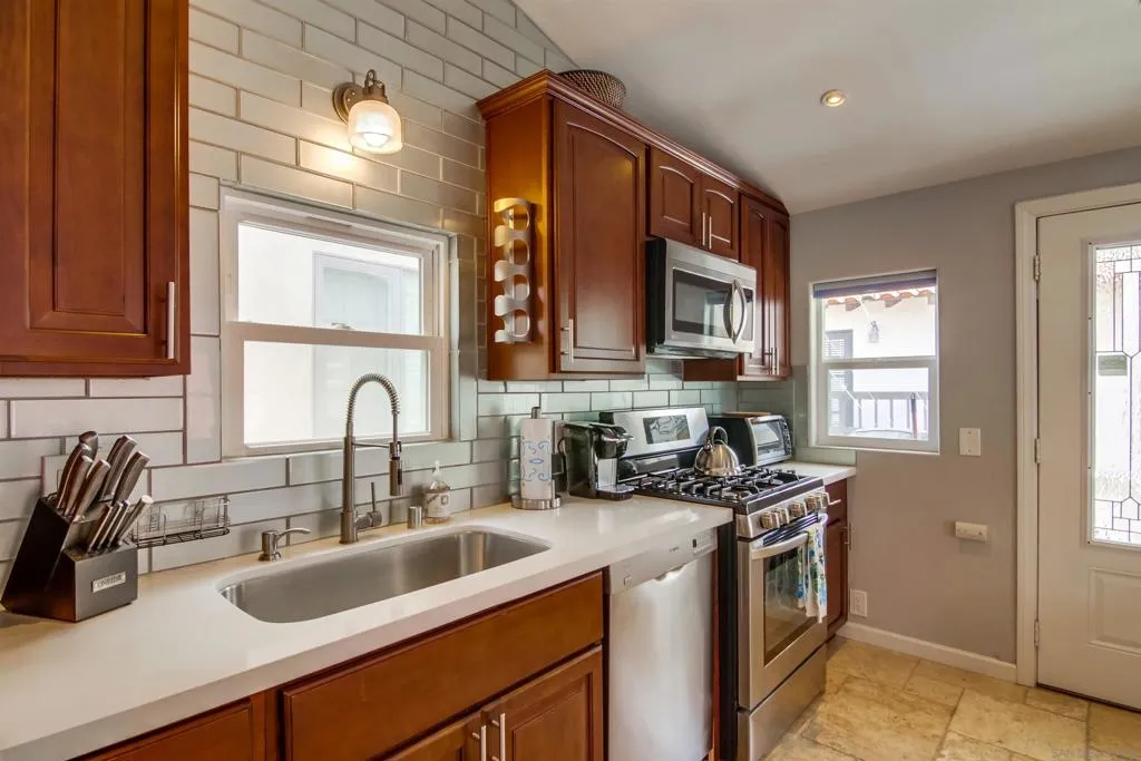 Looking for luxury in Mission Beach, but aren’t in need of a large vacation rental? This one-bedroom rental is perfect for a couple or a family of four. This home is located one house back from the ocean, on the second floor above the garage, with a private entrance. The main living area is opened by a comfortable couch, flat screen TV, dining for four, and a fully equipped kitchen. The high ceilings and recessed lighting make this space cool and comfortable. The Air Conditioning unit easily maintains temperature, if needed during the warmer summer months. The kitchen is stocked with everything you’ll need to feed the family, such as high-end appliances, cookware, glasses, dinner sets, and utensils. Just bring the family chef! The bedroom is a relaxing space including a comfortable Queen Bed, flat screen TV, large closet, and a chest of drawers. The bathroom (attached to the bedroom) has a walk-in shower with beautiful tile work from floor to ceiling. This unit also has its own designated washer/dryer, located in the garage. This apartment has one designated parking space within the shared garage. The dimensions for the garage space are 6ft 2in High X 7ft 9in Wide X 16ft 11in Deep. The garage is shared with the front house but includes separate parking spaces and washer/dryers. The only designated parking is the one space within the garage, if you need additional parking you will need to secure public parking. This is unit is located on the 2nd floor. There are stairs to and from the unit.