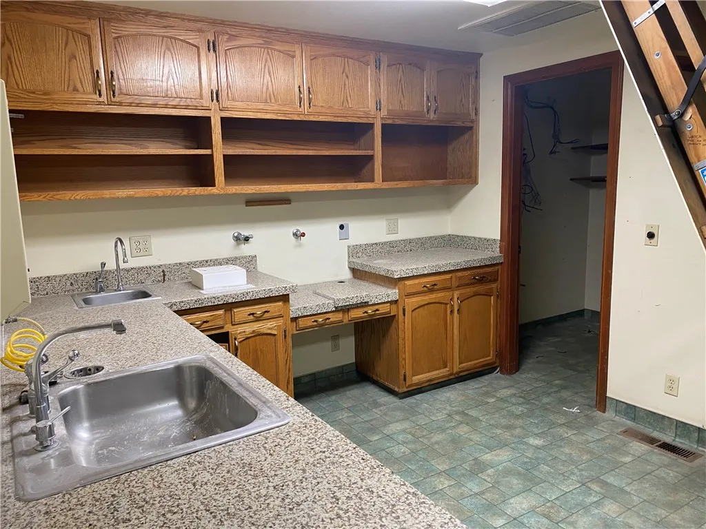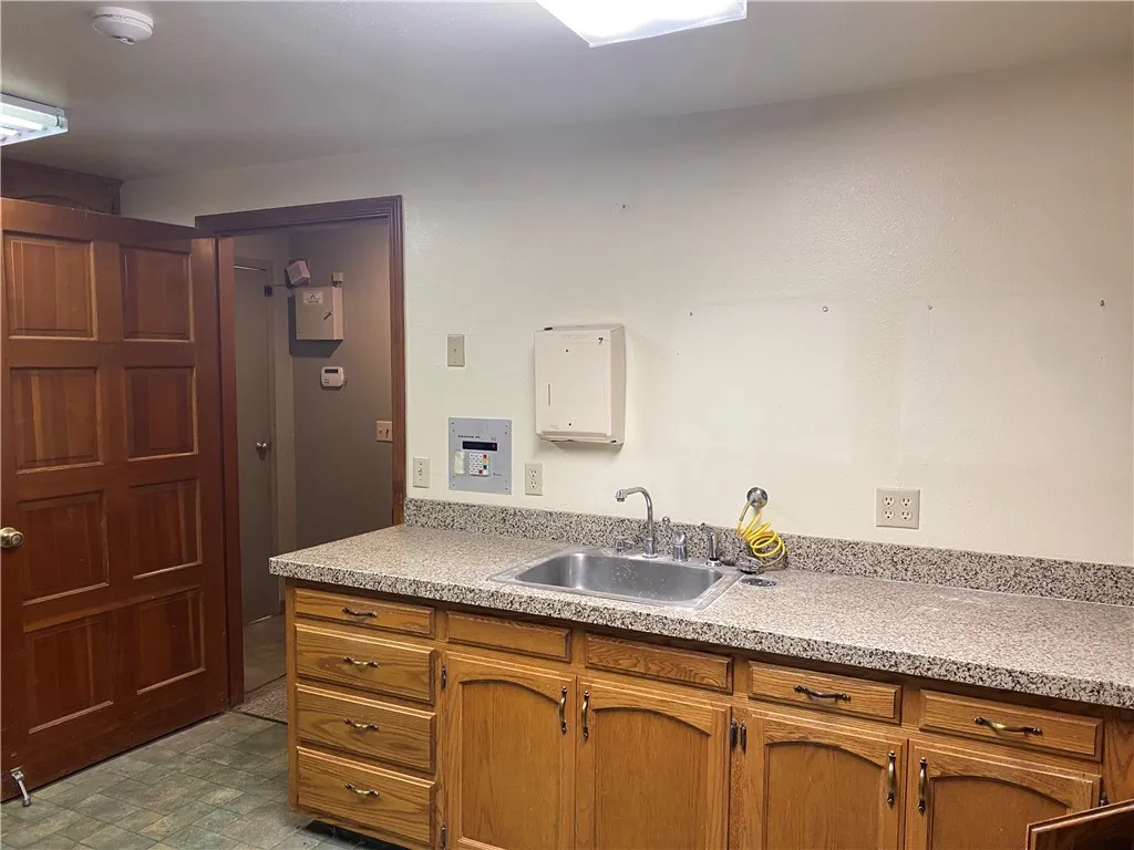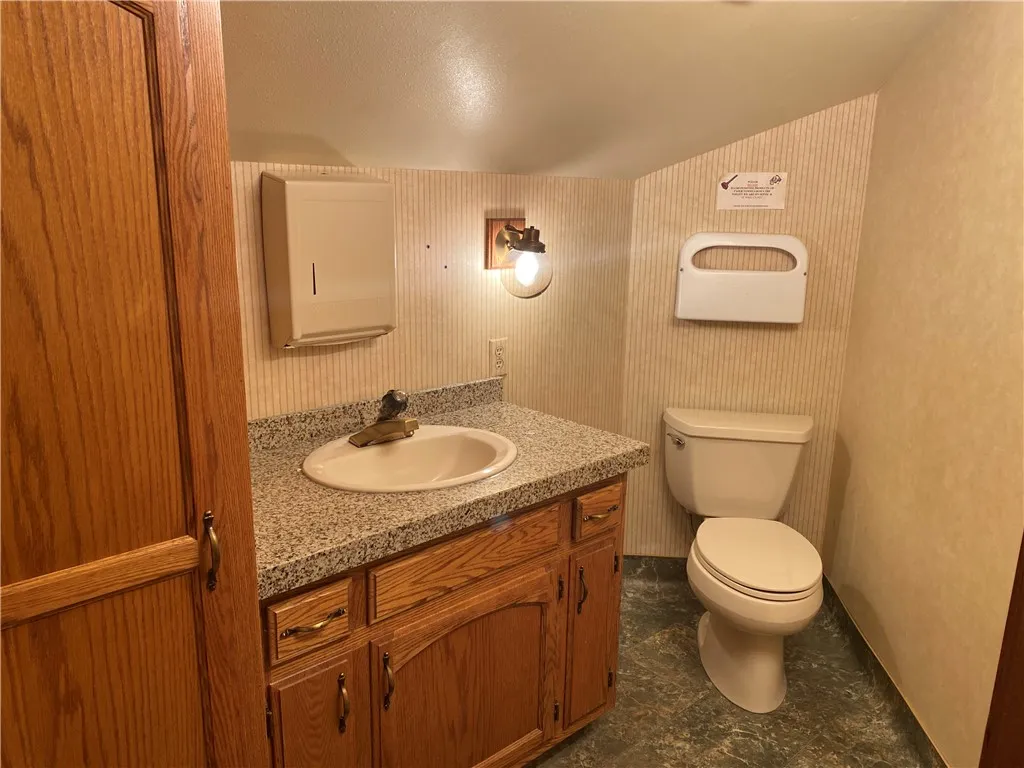 Upstairs, you’ll find a comfortable staff break room with a kitchenette and restroom, plus an additional private office space or potential apartment complete with a full bathroom and shower—ideal for extended use or future conversion.