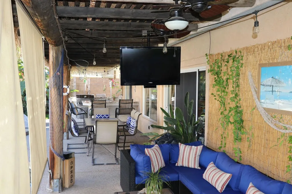 This amazing house has it all! Your ultimate relaxation pad has just hit the market. With a central location near local schools, churches, and even restaurants, you will never have to stray far from home. This turnkey rental has an incredible outdoor kitchen with a built in entertainment system. There’s even a billiards table. The pool is the perfect place to hang out with friends and family in the warm desert sun. The home has plenty of parking INCLUDING a 40 foot RV space. Location is everything and this home is located within 7 miles of both Acrisure Arena and all your local music festivals in Indio. You’ll never grow tired of viewing the Santa Rosa and San Jacinto mountains.