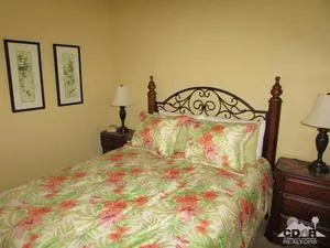 Indian Palms CC-Home sits on one of the best sites in this community. On the greenbelt featuring waterfalls and ponds and a stream. Entering through the courtyard into the home you will find upgraded tile flooring through the home except the 2 bedrooms. Master bedroom has a king size bed with a private patio. 2nd bedroom has a queen bed with a private patio also. The great room has a elegant entertainment center with fireplace. The adjacent kitchen is open to the great room. Back patio built in BBQ sink, refrigerator, lots of counter space. Amenities include a 27 hole public golf course pay as you play. A restaurant and bar within the gates. Lifestyle center with community pool/spa, plus access to 2 satellite pools and spas. Home is leased from Nov. 2024 to May 2025. Call for summer rates