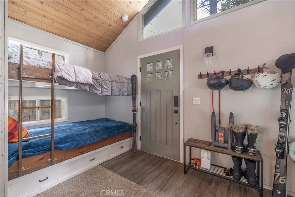 With two bedrooms, a full bath, and a practical kitchen with a comfortable island, this home is designed for relaxation. Plus, there’s a bonus sleeping area with built-in bunk beds that can accommodate up to four guests. The upstairs bedroom is a private retreat, offering plenty of space and natural light.