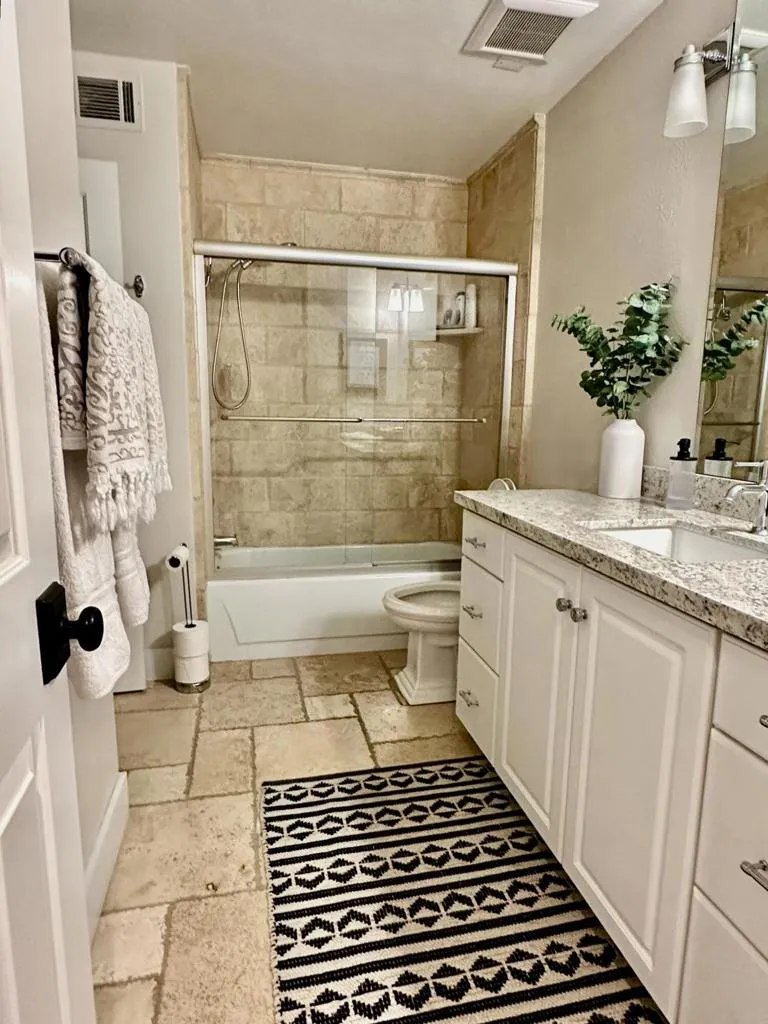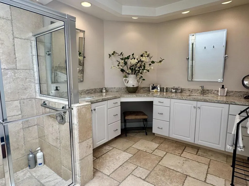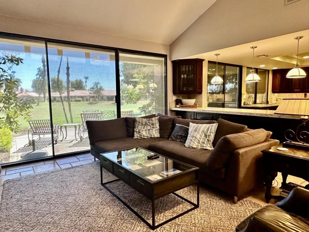 Experience the elegance of this beautifully remodeled 300 Max Plan, featuring 2 bedrooms PLUS den that owner has added a bed to, and 2 baths. With fine custom finishes from top to bottom, this spacious condo exudes sophistication. The tumbled Travertine flooring flows seamlessly throughout, enhancing the home’s luxurious feel.The stunning kitchen boasts a generous counter bar, perfect for entertaining. Tastefully appointed furnishings complement the stylish design, while the elevated location offers breathtaking views of the golf course. Don’t miss your chance to call this exceptional property home–please call for availability!