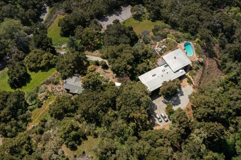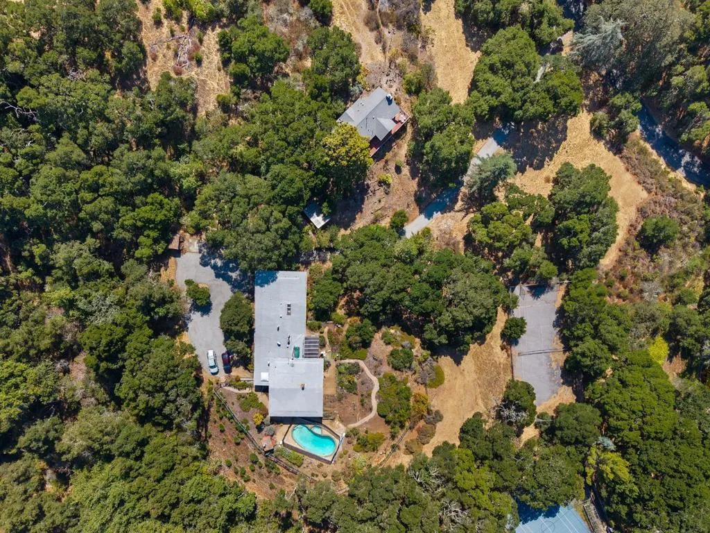 One of the largest lots in Palo Alto. Stunning vistas of the hills & bay in this once in a lifetime opportunity to own 12.55 acres in Palo Alto Open Space. This lot is located on an exclusive private road. Build a new estate or remodel the existing mid-century style home with expansive hill views. Sq ft allowed is based on a percentage of lot sq ft. Large living room with high ceilings and separate dining room have breathtaking views. Family room/solarium is off the eat-in kitchen with island. Two bedroom suites one being the large primary bedroom and two bedrooms with Jack and Jill bathroom. Garage converted into a refinished studio plus large workshop and storage. Separate two bedroom guest cottage with living room with fireplace and sunny deck with views of Windy Hill. Sunny Pool surrounded by gardens. Tennis court was built before land was subdivided and a corner is on neighbor’s property. Property has Greenhouses and sheds for storage and a walking trail on the property leads to a ridge with breathtaking bay views. This parcel is very private but close to Robert’s and Ladera Shopper, Menlo Park, Los Altos, Stanford University and 280 corridor to Silicon Valley. The bay view photos were taken from the trail on the back part of the acres which backs up to Arastradero Perserve.