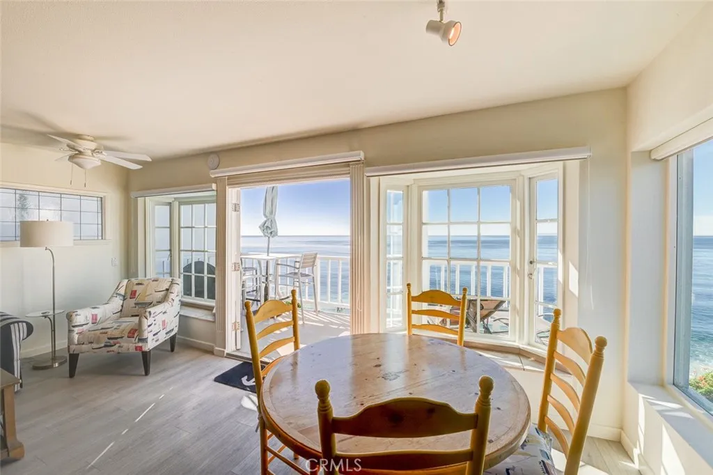 This stunning, fully furnished oceanfront/beachfront property boasts an unbeatable location with private steps leading directly to the sand. Enjoy breathtaking panoramic views of Catalina Island, Main Beach, and the North Coast lights from this two-bedroom, two-bathroom unit. The master bathroom and kitchen have been recently remodeled, and French doors lead to a private ocean view deck perfect for barbecues and watching the beautiful evening sunsets.