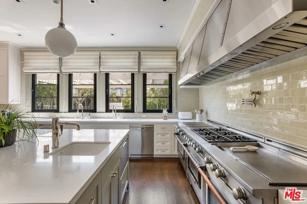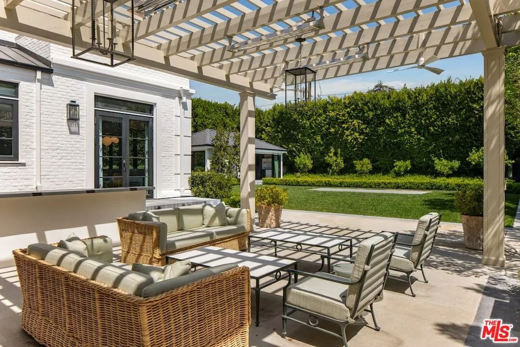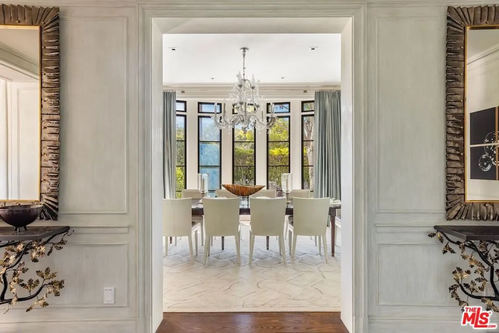 This paragon of traditional architecture is nestled privately behind mature hedges and a gate on a flat, half-acre in the heart of the prestigious flats of Beverly Hills. The estate has been newly curated and furnished under the masterful guidance of designer Michael S. Smith, following his transformation of the White House’s private residence. The entry makes an unforgettable statement with hand-painted chalky-stri walls by Maria Trimbell, custom bronze sconces by French sculptor Patrice Dangel, and a sweeping iron staircase adorned with a silk-and-wool runner by Patterson Flynn. In the formal living room, Venetian plaster walls and a Calacatta Viola marble fireplace by Jamb London create an atmosphere of quiet opulence. The dining room stuns with hand-painted Gracie wallpaper and a 19th-century Spanish crystal chandelier. The gourmet chef’s kitchen is a study in refined craftsmanship, decorated by Calacatta marble countertops, and state-of-the-art appliances, ensuring peak culinary performance. A large central island offers both ample work and gathering spaces. Thoughtfully situated adjacent to the kitchen, the den duals as a screening room, punctuated by custom walnut paneling, a hand-carved limestone fireplace, and bespoke millwork. The lushly landscaped grounds create a private oasis, featuring a resort-style pool and spa, surrounded by manicured gardens and mature hedging. A detached guest house/gym adds versatility, while multiple outdoor seating areas, a shaded loggia, and elegant hardscaping set the stage for alfresco entertaining. The primary suite is a serene retreat, highlighted by a private sitting room, dry sauna, fireplace, and a private terrace. Dual spa-inspired bathrooms are equipped with Waterworks fixtures, radiant heated floors, and expansive closets with custom dressing rooms. Designed for both relaxation and hosting, 610 North Canon represents a confluence of timeless elegance with contemporary sophistication. This one-of-one trophy property is situated only moments from the world class dining, shopping, hotels, and attractions only downtown Beverly Hills living has to offer.