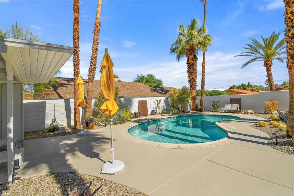 Gorgeous Mid Century Stunner with an open and spacious floor plan! This home offers 3 bdrms /2 bths and has every amenity possible for a perfect vacation. Located on an oversized lot with a pool to cool down and unwind in after a hard day of golfing or hiking. Within walking distance of the world renown Santa Rosa Mountains. Head over to Old Town La Quinta for some dining and shopping galore. Perfect spot if you are here to visit the tennis tournament or music festivals. Come join us and relax!