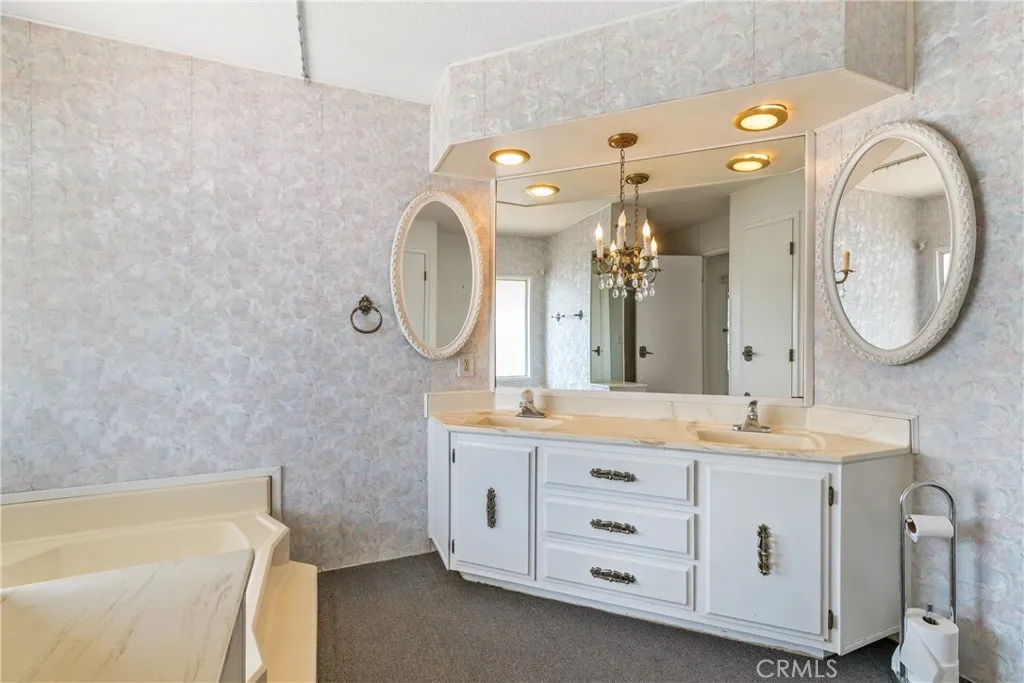 Roomy 2 bedroom 2 bath mobile home with light interior located in Eden Roc Villa 55yr+ senior park. Living/dining combo with built-in china hutch. Kitchen has gas stove, dbl oven, dishwasher, and extra counter space open to family room. Master has dual-sink vanity, garden tub, built in shelves. Guest bath has large low-step-in shower. Forced heat and air plus energy-saving evaporative cooler. Ceiling fans. Covered patio. Security bars. Carport. Washer, dryer, refrigerator, shed included. All section 1 termite work has been completed. Just needs a little love and care.