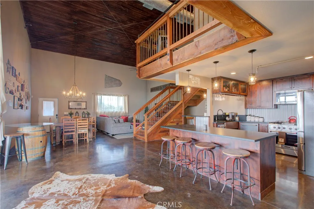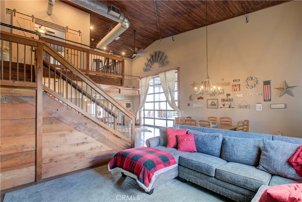 New Improved Price! Discover tranquility and wide-open spaces with this incredible mountain-view property nestled in the heart of Cathey’s Valley. Situated on 103 acres of fully fenced agricultural land, this unique Barndominium-style two-story home blends rustic charm with modern comfort. The home features 2 bedrooms, 1.5 bathrooms, and offers 1,932 square feet of interior living space. An additional approx. 3,750 square feet of covered exterior barn-style area provides endless possibilities for entertaining, hobbies, or livestock. Step into a beautifully designed farmhouse-style interior. The main level boasts an open floor plan with a cozy family room, spacious dining area, stylish kitchen, laundry room, and half bath. A large glass-panel roll-up door seamlessly connects the indoors with the outdoor entertaining space, offering breathtaking views and fresh country air. The chef’s kitchen is equipped with KitchenAid appliances, including a propane stove, microwave, dishwasher, refrigerator, and trash compactor. A charming breakfast bar and large center island with pendant lighting add both function and flair. Upstairs, a runway-style hallway leads to the primary bedroom suite, complete with a luxurious slate-tiled shower, soapstone vanity, and farmhouse touches throughout. The second bedroom includes built-in bunk beds, barn doors, and a ceiling fan perfect for family or guests. This steel-framed home is loaded with upgrades: ceiling fans, upgraded cabinetry, modern flooring and lighting, central heating and air, and a fire sprinkler system for added peace of mind. Outside, the rolling hills are ideal for both relaxation and agriculture, featuring a seasonal pond, underground electricity, well and septic system, water tanks, storage container, and a gated entry. Whether you’re looking for a peaceful retreat, a place to entertain, or a property ready for livestock, this Catheys Valley gem offers it all.