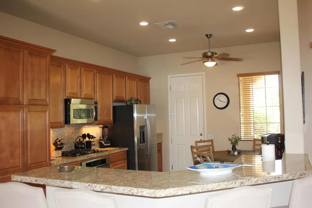 Seasonal Lease Furnished. Pool/Spa South Facing Leisure… Canterra Model. Great Phase 2 Location! Sun City Shadow Hills offers a Fun, & Active Lifestyle! Enjoy this Pride of Ownership 2 Bedrooms, 2 baths, Great Room, Charming Kitchen Off Great Room with Island Bar. Stainless Steel Appliances, all the Comforts of home, plus Great for Entertaining! Spacious, Open Floorplan w/10 Ft. Ceilings, Ceiling Fans, Tile throughout the living spaces, Carpet in bedrooms. Primary Suite features King Sized Bed, TV, bath w/ Dual Sink Vanity, Shower Stall with Glass Enclosure, Large Walk in Closet. Guest Bedroom is Queen Sized & Ideally located for maximum privacy from Primary Suite! Guest Bath with tub/shower combo. Separate Laundry Room with a Deep Sink & plenty of Cabinetry. You’ll love the Private ”Salt System” Pool & Spa, Recently Renovated! Professionally Landscaped Front & Backyard. Enjoy the many amenities Shadow Hills has to offer, Two Golf Courses, Three Pools (1 Indoor) and Spas (1 Indoor), Water Aerobics, 2 Fitness Centers, Pickle ball, Bocce Ball, Tennis, Social Clubs, Excursions (Arts, Sports, Concerts) Travel/RV Club, doggie Parks, Miles of walking for your Enjoyment! On site Shadows Restaurant plus 2 Bistros!
