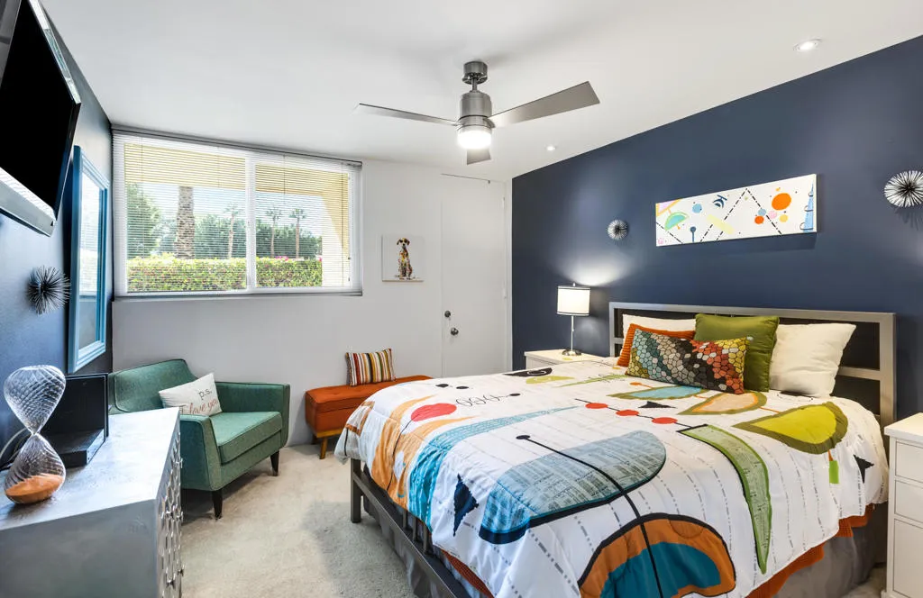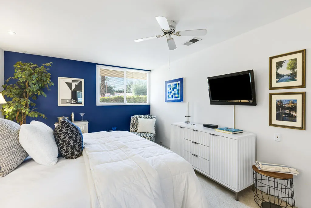 Vacation Rental. Minimum 30 day booking required. 2BR/2Bath Mid Century condo with beautiful views. You will love this amazing single story home that will take you back to the start of the jet age! Large private patio in a great location close to the pool/spa for that perfect Palm Springs vacation. Close to downtown PS. Turnkey ready with smart TV’s in living room and each bedroom. Indoor/outdoor dining. May-Sept: $113/night. Oct-Apr $144/night plus $395 cleaning fee, $90 monthly utility fee, $188 Prop Fee and an $800 refundable security deposit. This place has that 1960’s way cool vibe going on! It has free in unit/laundry, a nice layout of space, plenty of storage, and parking (uncovered) for more than one vehicle. Make your vacation reservation today! Booked: 2025. January-May 2, 2026 and Feb 1-Apr 3, 2027. All other dates available!