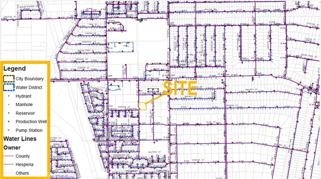 2.04 acres vacant land zoned Medium Density Residential within the City of Hesperia. This Main Street Corridor Specific zone offers an opportunity to deliver medium density multi-family housing in a garden setting such as courtyard apartments, condominiums and walk-up townhomes. This zone also permits single family residences in small lot subdivisions. The gross residential density range permitted in this zone is 8 – 15 units/acre This flat, street-level parcel has paved access, water, sewer, and power (buyer to verify all utilities).