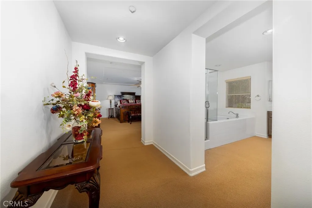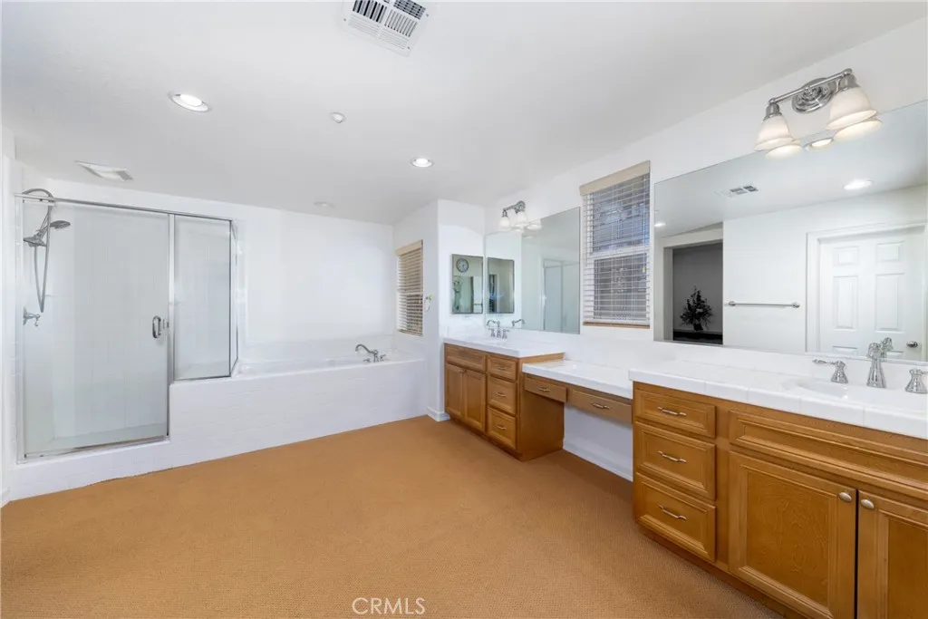 NEW luxury vinyl plank waterproof flooring has been installed on the main floor for both family and living room and office upstairs. This Home is nestled in a prestigious GATED Community in North Fontana!!! Well maintained neighborhood in Citrus Heights with 5 bedrooms and 4 baths! Spacious floor plan with 3 car garage with 3 overhead racks for additional storage! This AMAZING home features upgraded tile floors, an enormous kitchen with a grand island that opens to the family room. Cozy up to the fireplace and has recessed lighting and ceiling fans throughout. ENJOY a Very convenient downstairs bedroom with a full bath that is perfect for guests or in-laws. Newly installed water heaters in 2023 with 4 year warranty and A/C units along with Wynstan security screens on the main floor. Life Source Water System filter installed throughout the whole house with new bio-filter in August 2024!