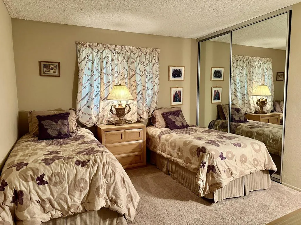 Enjoy breathtaking vistas from the expansive patio of this beautiful 2-bedroom plus den end unit. This turnkey-furnished gem features a king-sized master bedroom, two twin beds in the guest room, and a pull-out sofa in the den, making it perfect for accommodating guests.With vaulted ceilings and nearly 1,600 sq ft of living space, the open floorplan feels both spacious and inviting. Upgrades include dual-pane windows and a newer gas stove, enhancing both comfort and efficiency.Monterey Country Club is the ultimate desert retreat, offering a perfect blend of relaxation and luxury. Don’t miss the chance to make this stunning property your own!