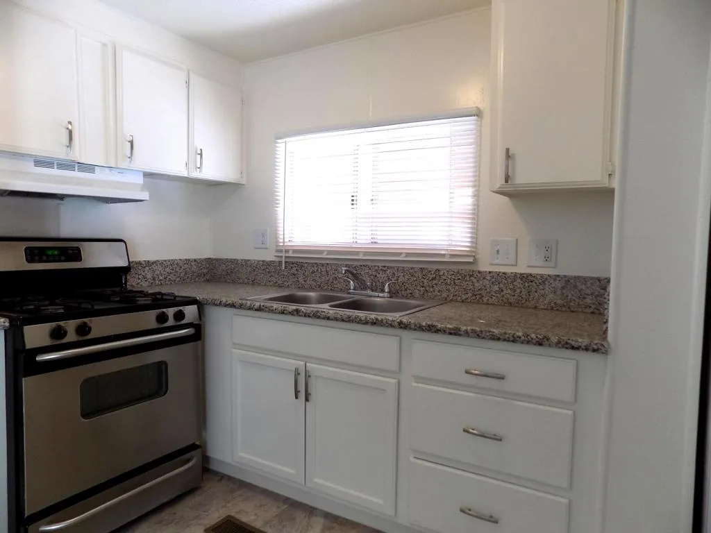 Space 39 at the Rancho Mirage RV and Mobile Village is a charming 552-square-foot, 1-bedroom, 1-bath, 1970 Skyline home ready for your personal touches. A small fenced concrete slab, perfect for a small table and chairs for outdoor relaxation, greets everyone arriving. Through the screen door is the privacy-screened patio, providing shaded comfort. Sliding glass doors lead to the home’s living room with a dry bar, wall-mounted air conditioner, and evaporative cooler. Newer flooring is found throughout the house. The spacious kitchen has a stainless steel range, granite counter, and white cabinetry with abundant storage. A short hallway with additional storage, a newer furnace, and the home’s rear entrance lead to the private areas. The bathroom has a shower-over-tub, toilet, and newer vanity with a granite counter. The bedroom is at the rear of the home and has a wall-mounted AC unit, mirrored closet doors, and open shelving for storage and display. All interior walls have been painted white, allowing the next owner to choose a color palette. Space rent for this unit is $1150/month, including use of all the park amenities and services. Rancho Mirage RV and Mobile Village is an all-age community. Park approval is required. Call today about your private showing. (c)2024 Alder-LaRue Properties