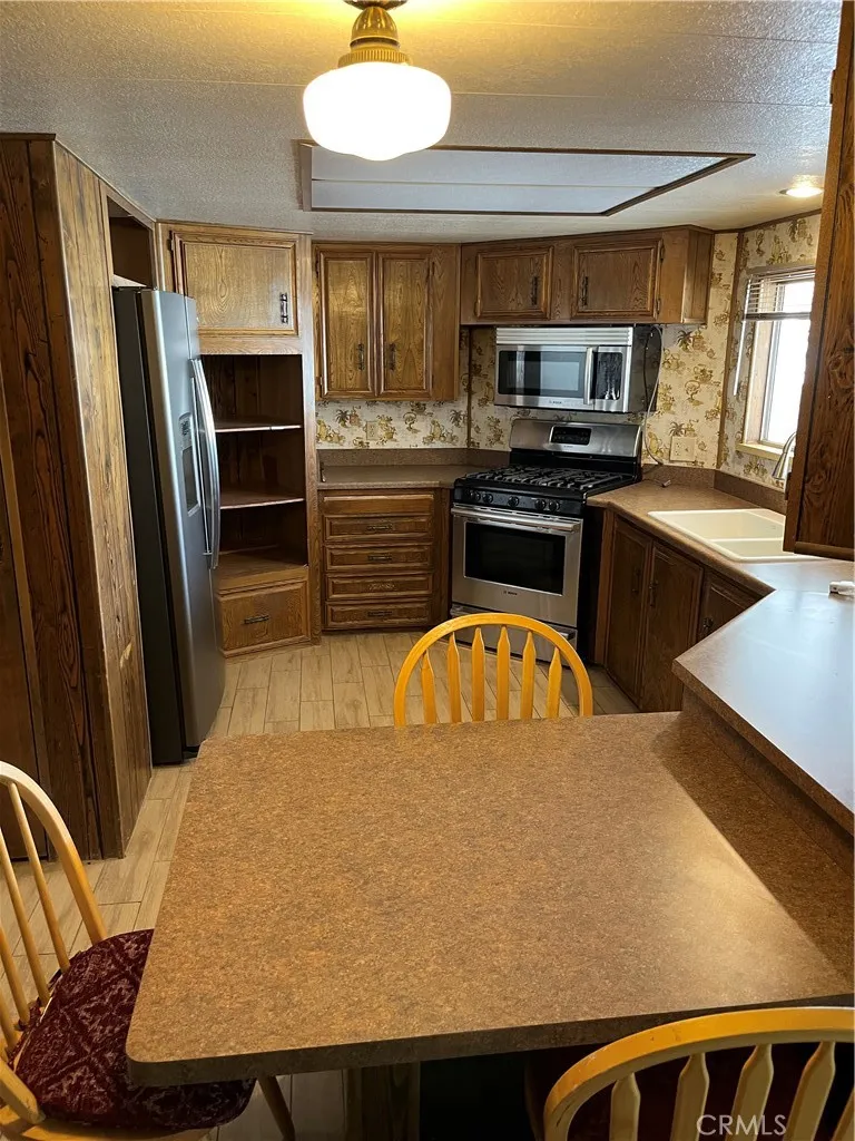 Very clean and well kept 2 bedrooms, 2 full baths in the desirable Gates of Spain Mobile Home Park. Large carpeted living room and dining room. Kitchen features nice formica counters, all Bosch appliances, ( refrigerator is GE ), with pantry. Kitchen flows nicely into family room with bar/ sink for entertaining. All new tile through out the home. Newly enclosed patio/sunroom with new slider, dual pane windows and floor. Very sizable master bedroom with cedar lined closets. Master bathroom with large soaking tub, dual sinks and separate shower. Laundry room with desk and closets. Covered front porch with mountain views and covered back patio with fenced yard for dog area. Come take a look.