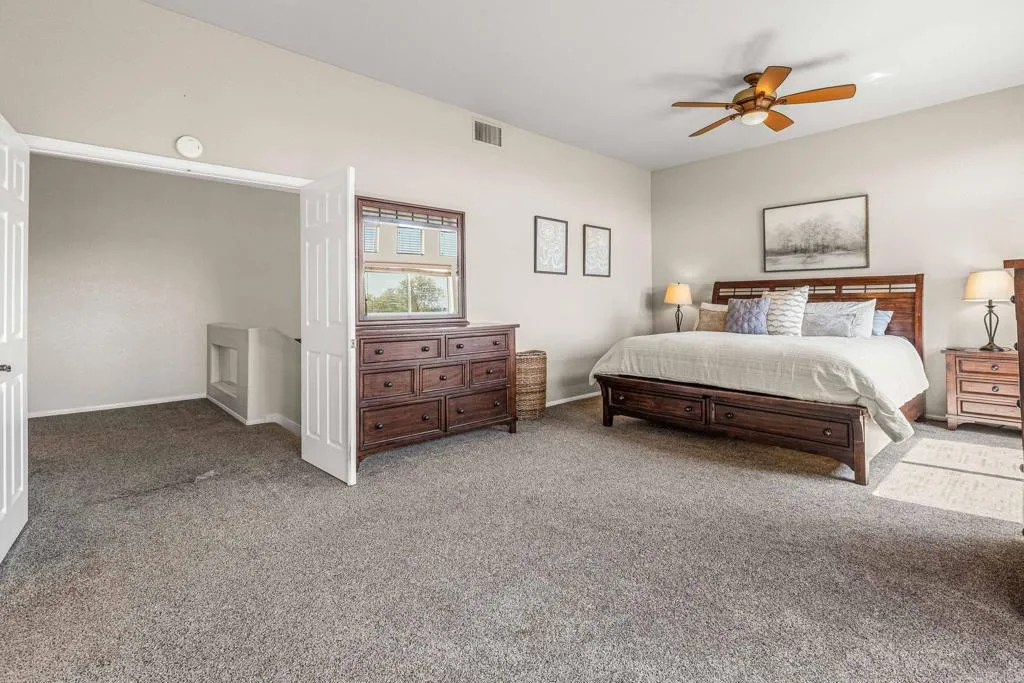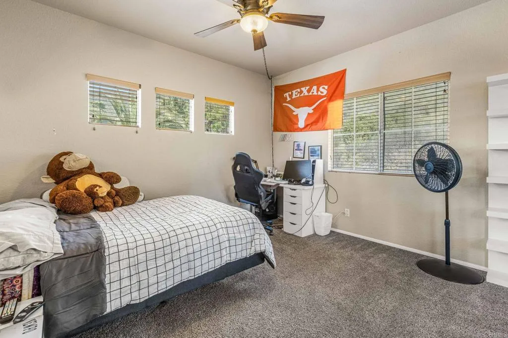 Positioned on 4.3 acres in Hidden Trails, this property offers sweeping coastal and golden sunset views along with extensive usable space for a variety of lifestyle needs. Backing to McGinty Mountain, the setting provides a high level of privacy and a quiet environment. The home includes six bedrooms, and three bathrooms, with two bedrooms located on the main level to accommodate multi-generational living. The primary suite features a fireplace and a recently remodeled walk-in shower. Interior updates include new flooring, a refreshed kitchen, and multiple living areas, including a space with a wet bar. Outside, the property is designed for recreation and relaxation with a Pebble Tec pool and spa, outdoor kitchen, and landscaped grounds with a fountain. Modern systems such as owned solar, a newer HVAC, and a newer roof support efficiency and reliability. A large lower lot offers ample room for an ADU, workshop, RV parking, or additional structures. With no HOA and close proximity to Rancho San Diego, this home delivers land, views, and functional upgrades in a sought-after location.