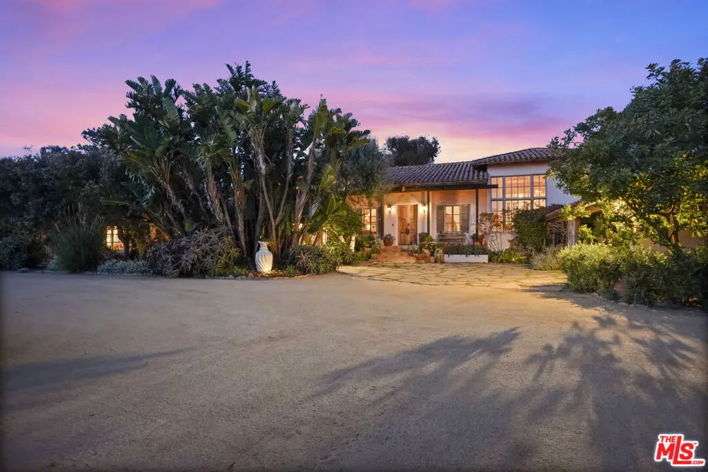 Welcome to Villa La Paloma, an iconic Point Dume estate offering the elegance and scale of Montecito living within one of Malibu’s most coveted coastal enclaves. Set behind wrought iron entry and exit gates on a rare 1.4-acre double-wide lot, this six-bedroom residence blends European coastal inspiration with the relaxed sophistication of California luxury. Located a shell’s throw from the beach, this rare offering has been owned by one family for the past 35 years. Dramatic architecture unfolds upon entry, with soaring beamed ceilings and light-filled living spaces designed for both grand entertaining and effortless everyday living. The living room flows seamlessly into a spacious gourmet kitchen featuring an expansive marble island with breakfast bar, seating areas, a signature fireplace centerpiece, built-in bar, dining area, and stairs leading to a wine cellar. All entertainment areas indoor and out are complemented by integrated Sonos audio.The main level hosts a serene primary suite with a luxurious spa-like bath, two guest bedrooms, one of which is being used as a private office with direct garden access. The mezzanine-level of the home can be used as a bedroom or study while enjoying ocean views, while the west wing of the home offers 3 additional bedrooms, two of which combine to create a private apartment with its own entrance and exit. A separate game room with pool table opening to an intimate interior courtyard complete the west wing.French doors lead to all levels of outdoor living. An outdoor entertainment center including a Lynx built-in barbecue, wine and beer refrigerator, cocktail bar, and outdoor television create a resort environment. The flat parklike grounds feature a pool and spa adorned with hand-painted tiles, multiple lounge and seating areas, flowing fountains, a lush lawn, meditation and Zen gardens, a private orchard and a labyrinth beneath the watchful gaze of a giant Buddha. The additional amenity of generous parking for ten cars or more on the property make entertaining a breeze.Just moments from world-class surfing beaches and the Point Dume Headlands, known for breathtaking views and seasonal whale watching, Villa La Paloma offers privacy, scale, and timeless coastal living.