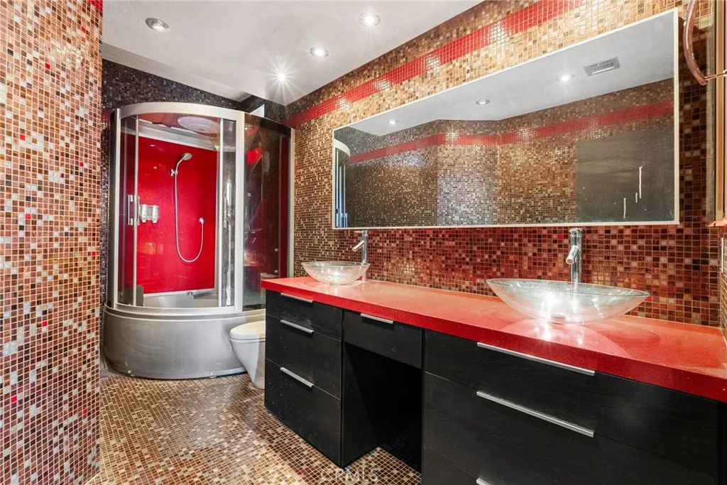 Elegant top level condo with a private rooftop deck located in the heart of prime Sherman Oaks! Upon entering you are greeted by soaring ceilings and an abundance of natural light providing the living area a grand ambiance. White tile flooring and large glass sliding doors allow for an open and fresh feel throughout the main living spaces. Offering 2 bedrooms, 2.5 bathrooms, and a spacious loft (that can be a 3rd bedroom), this 1,673 sqft. home is filled with sophisticated details and character. From the glass tile walls in the bathrooms, the custom built in closets and the unique kitchen this home is truly one of a kind. The striking glass bottom spiral staircase leads to the spacious loft complete with a half bathroom, perfect for a home office or additional living space. Enjoy the benefits of a brand new HVAC system recently installed! While upstairs, step outside to your very own secluded roof top deck – perfect for warm nights and large enough for entertaining. Another perk is this property’s proximity to the LA Riverfront Green Way, Ventura Boulevard, the 101 Fwy, shopping, restaurants, night life and more. Don’t miss the opportunity to make this amazing property your new home.