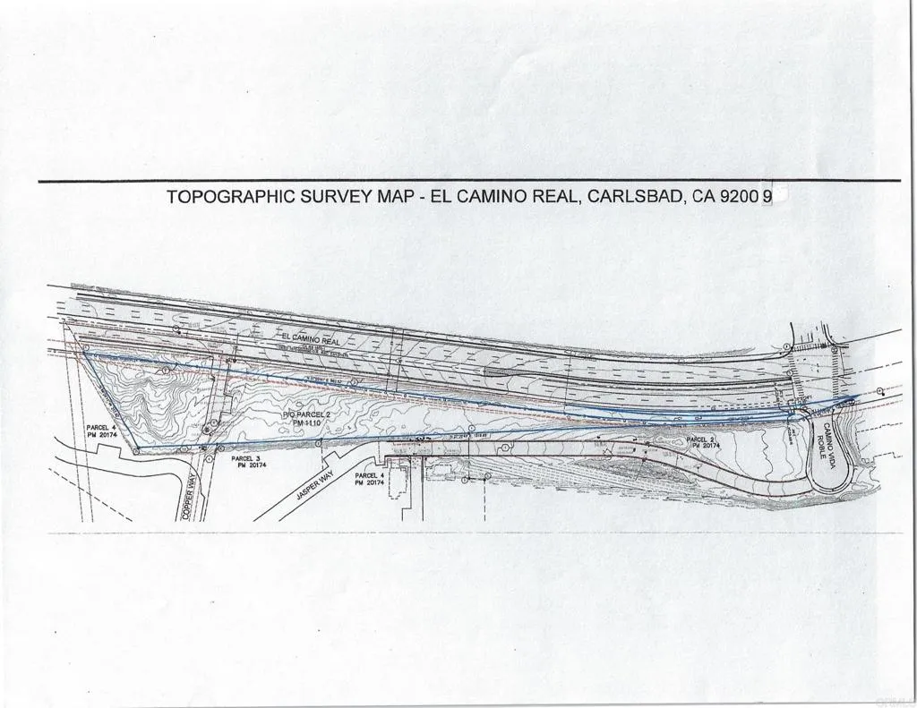 THIS PROPERTY IS TRANGULAR SHAPED WITH AN ESTIMATED ACERAGE OF 2.19 TO 2.48. AFTER REDUCTION OF THE EL CAMINO REAL ROAD WIDENING EASEMENT (BUYER TO VERIFY) ACCESS IS A 30 FOOT APRON OFF THE EASEMENT ROADWAY JASPER WAY. CURRENTLY THERE IS A SEWER HOOK UP MORATORIUM IN THE CITY OF CARLSBAD AFFECTING THIS PROPERTY THE CITY OF CARLSBAD PURCHASED AN EASEMENT ALONG EL CAMINO REAL ON THE WEST SIDE OF THIS PROPERTY FOR THE WIDENING AND IMPROVEMENT OF EL CAMINO REAL. THE CITY OF CARLSBAD HAS NOT SET A DATE NYET FOR THE CONSTRUCTION. THIS PROPERTY HAS A LONG ANBD NARROWING SHAPE. THE SOUTHERN END OF THE PROPERTY ,WHICH HAS A DEPRESSION IS THE MOST LIKELY LOCATION OF ANY IMPROVEMENTS. A SEWER EASEMENT OF 30 FEET CROSSES THE LOWER THIRD OF THE PROPERTY AND IS A HIGH PRESSURE LINE. THERE IS A 30 FOOT APRON ACCESS OFF JASPER WAY. BUYER TO SATISFY SELF AS TO ANY AND ALL CONDITIONS AND AVAILABILITY FOR DEVELOPMENT PRIOR TO THE CLOSE OF ESCROW. THERE IS A SDGE HIGH PRESSURE GAS LIKNE RUNNING ALONG THE NEW EASEMENT AS DESIGNATED BY YELLOW STAKES ABOUT 5 FEET TALL BUYER TO DETERMINE IF THERE IS ANY VEGETATION MITIGATION ON THE PROPERTY AND SATISY SELF.